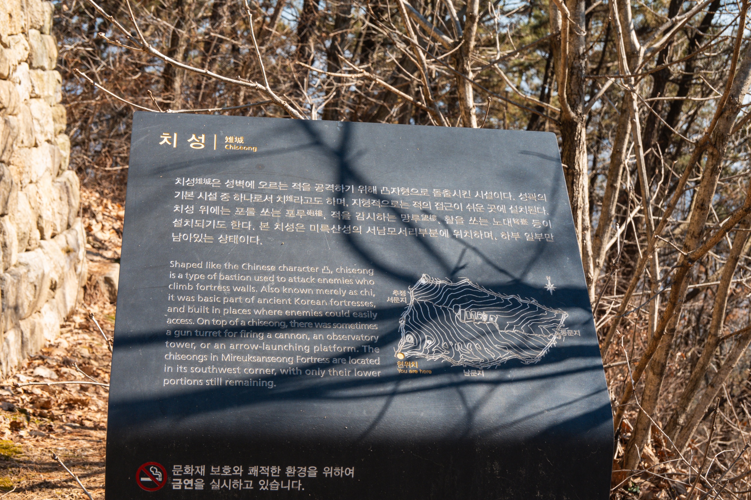 미륵산성 치성 안내 표지판