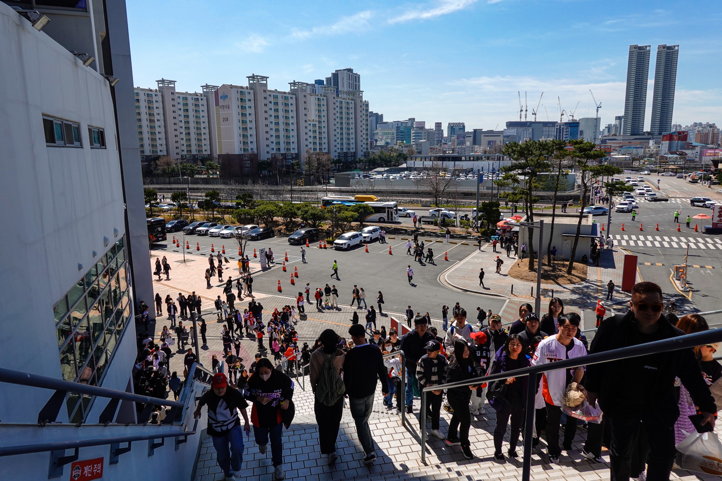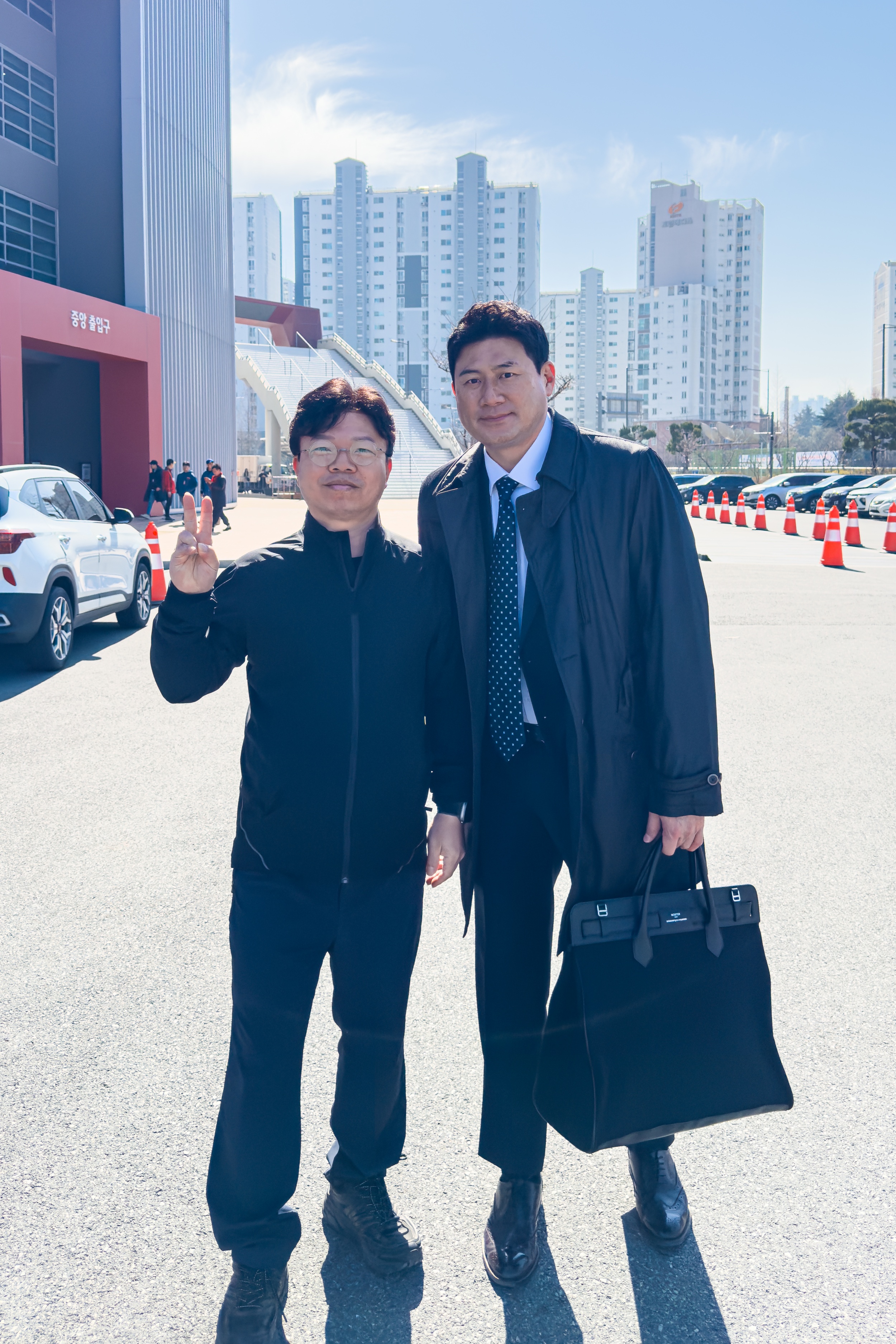 선수들 출근길에 올 시즌 새 외국인 투수 윌 크로우와 제임스 네일 선수에게