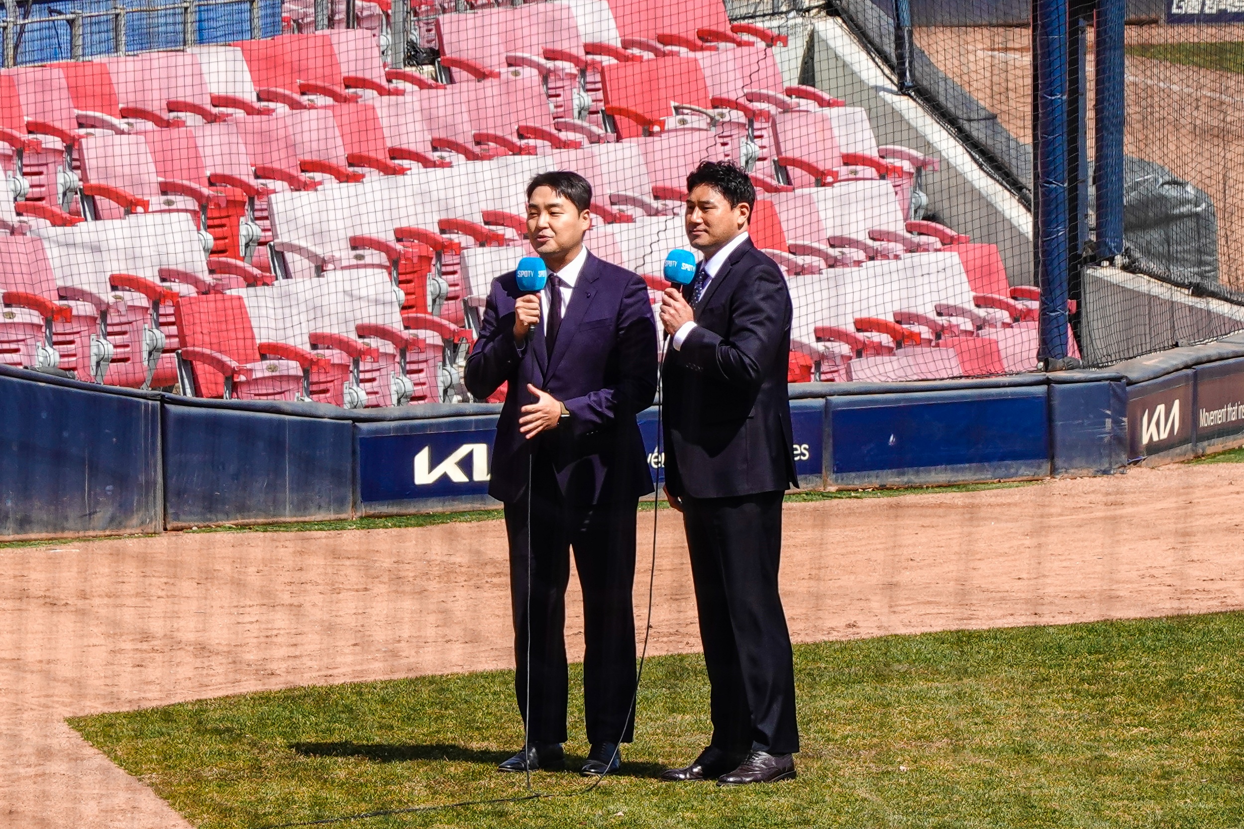 사인볼 받고 챔피언스필드에서 서재응 해설 위원과 인증 사진도 남겼습니다.