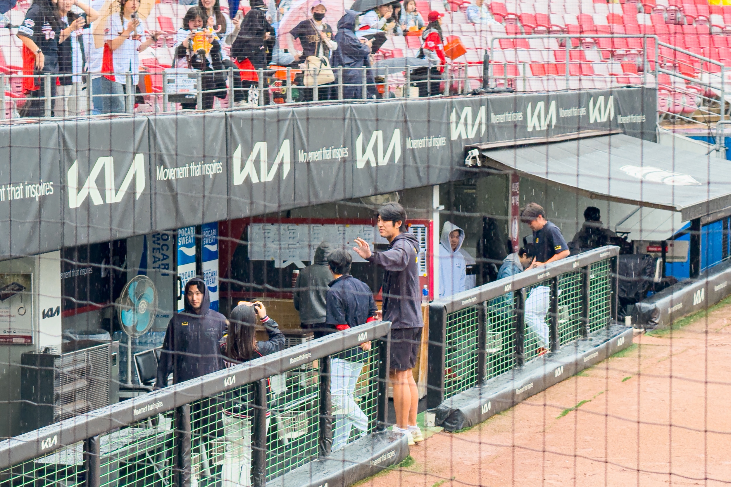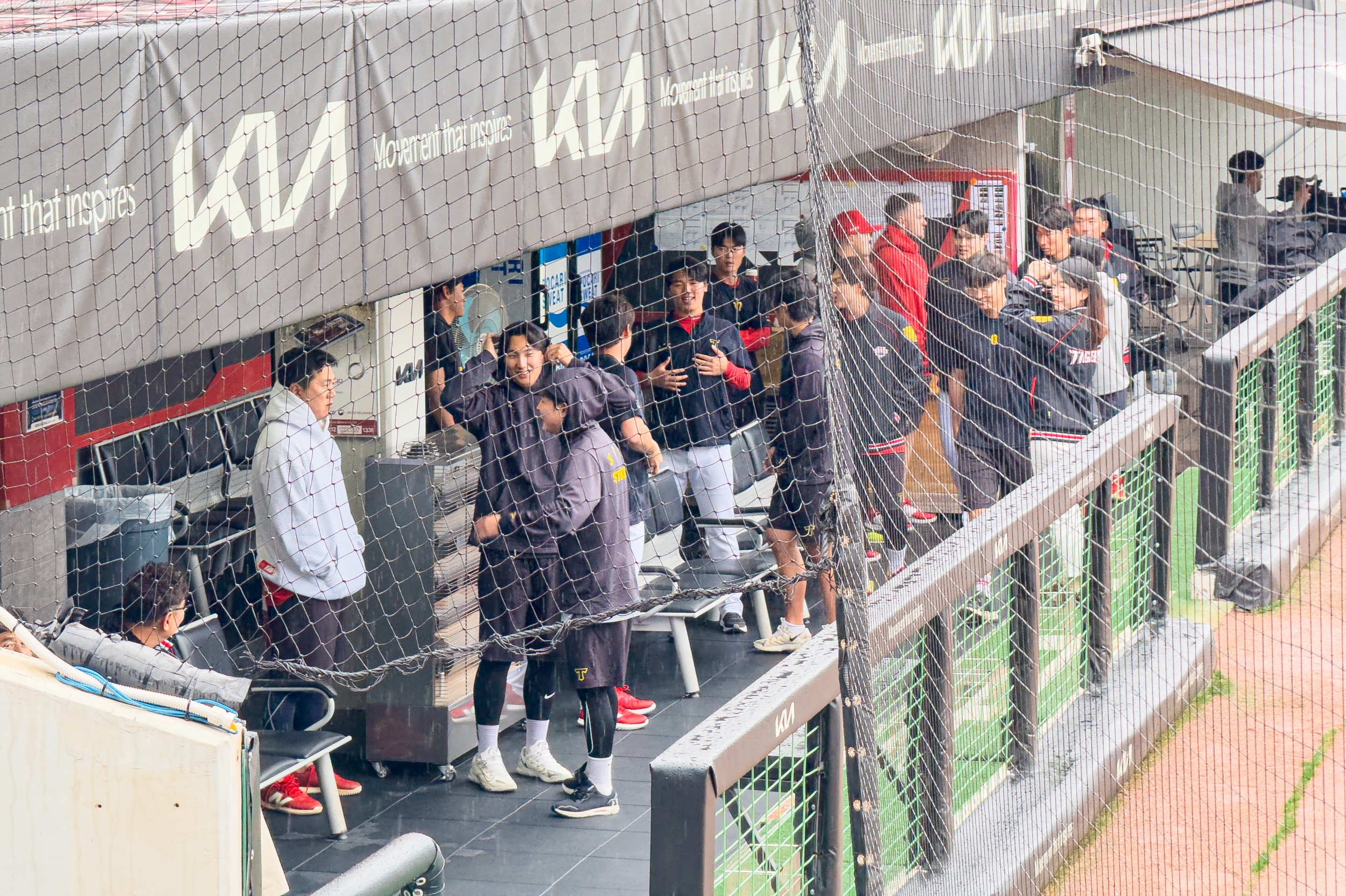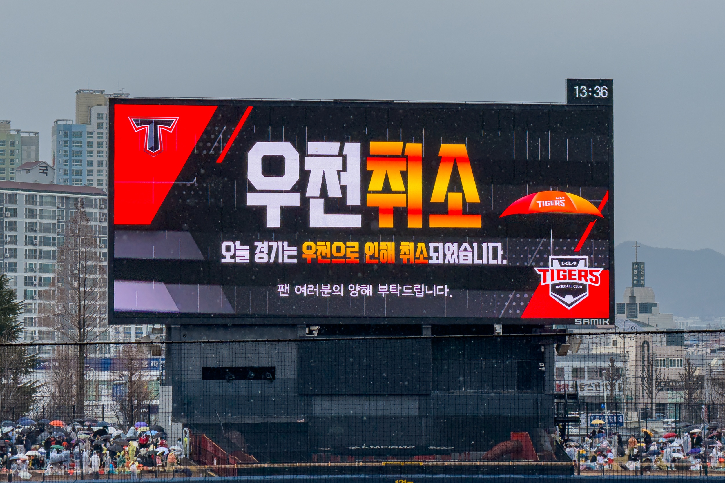 경기는 우천 취소되었지만 기아타이거즈 선수들은 그라운드에 나와 팬들에게 감사 인사를 전했으며 스카이박스에서는 개막축하 공연 온 케블러가 팬들과 인사를 나눴습니다.