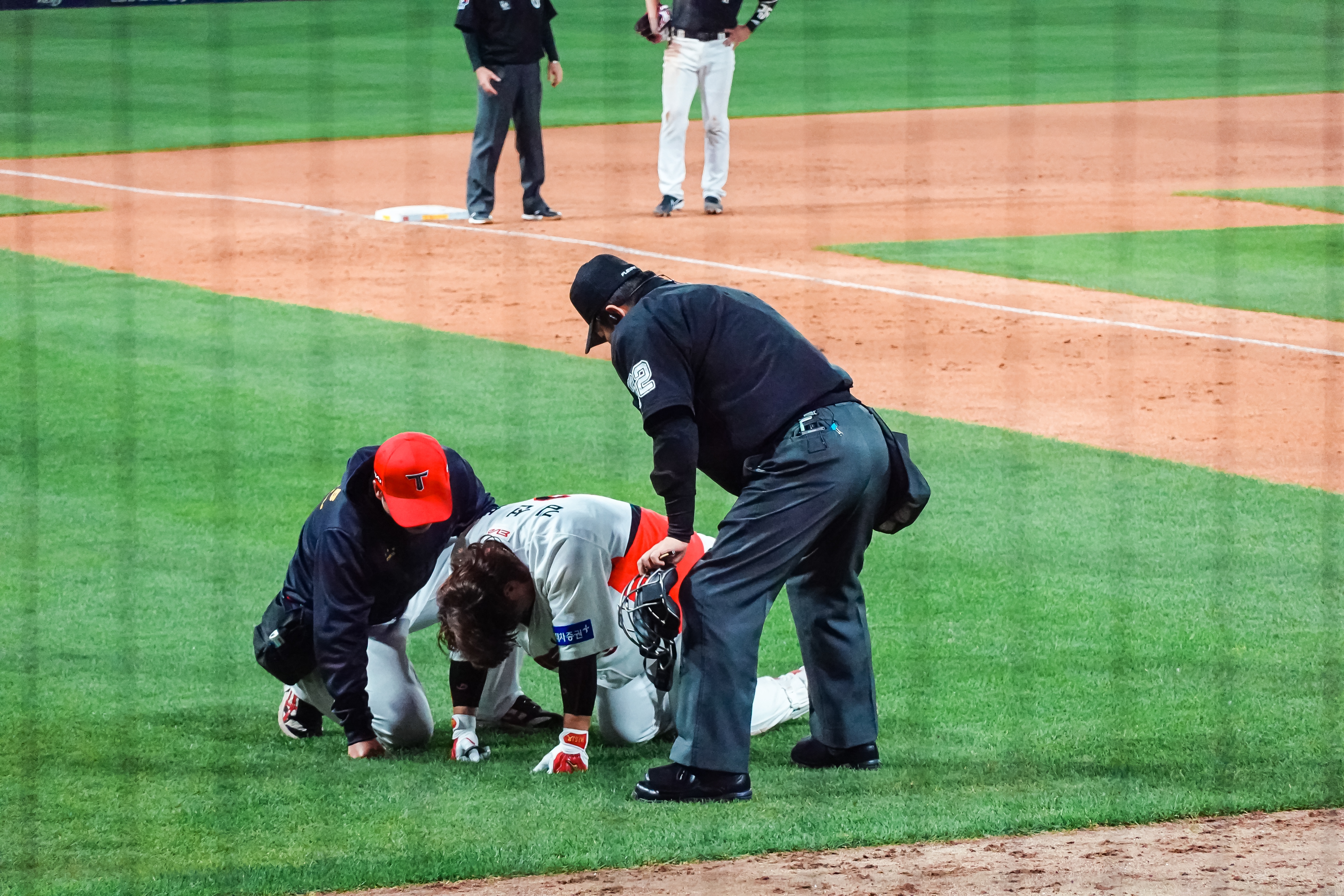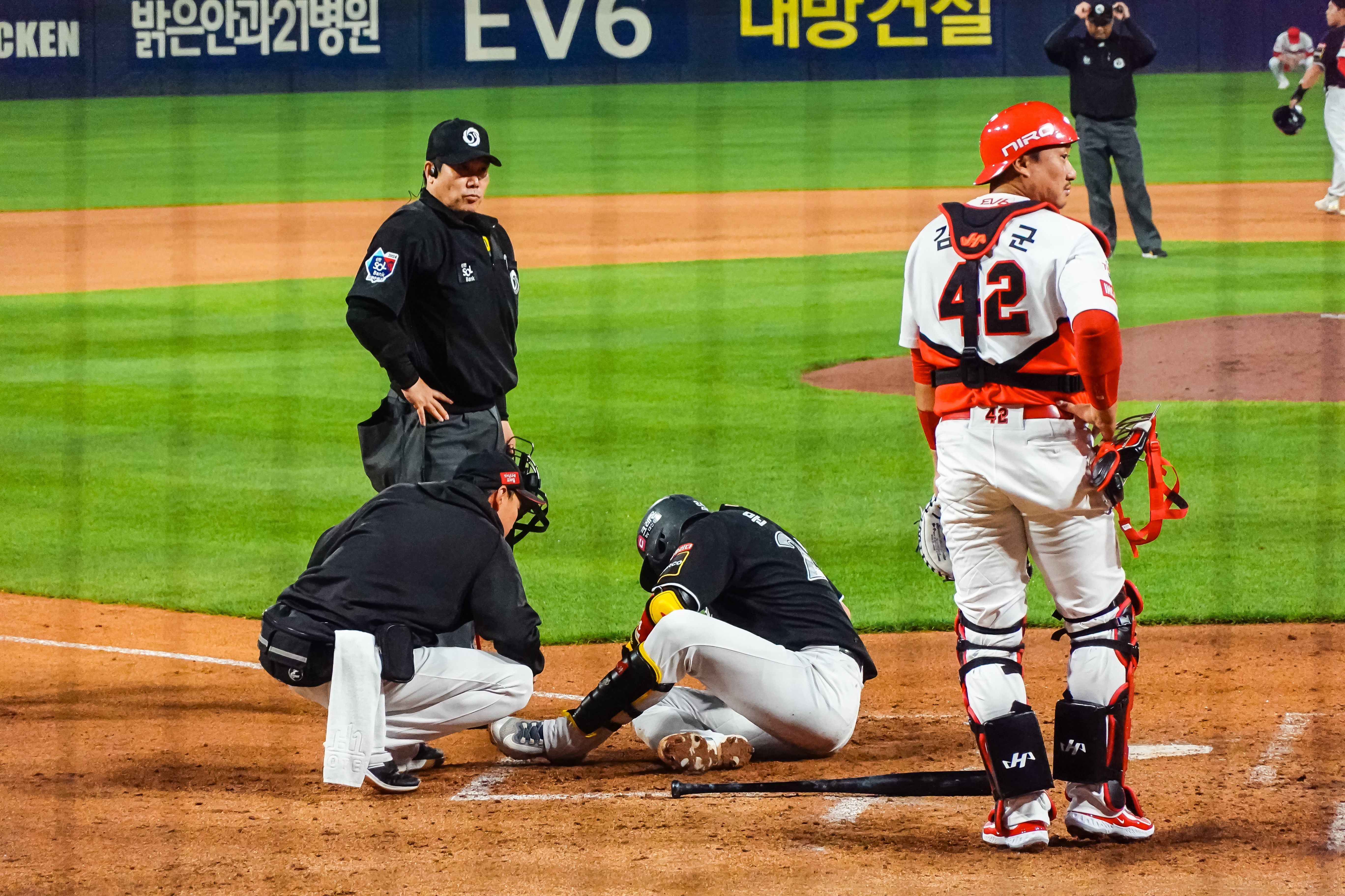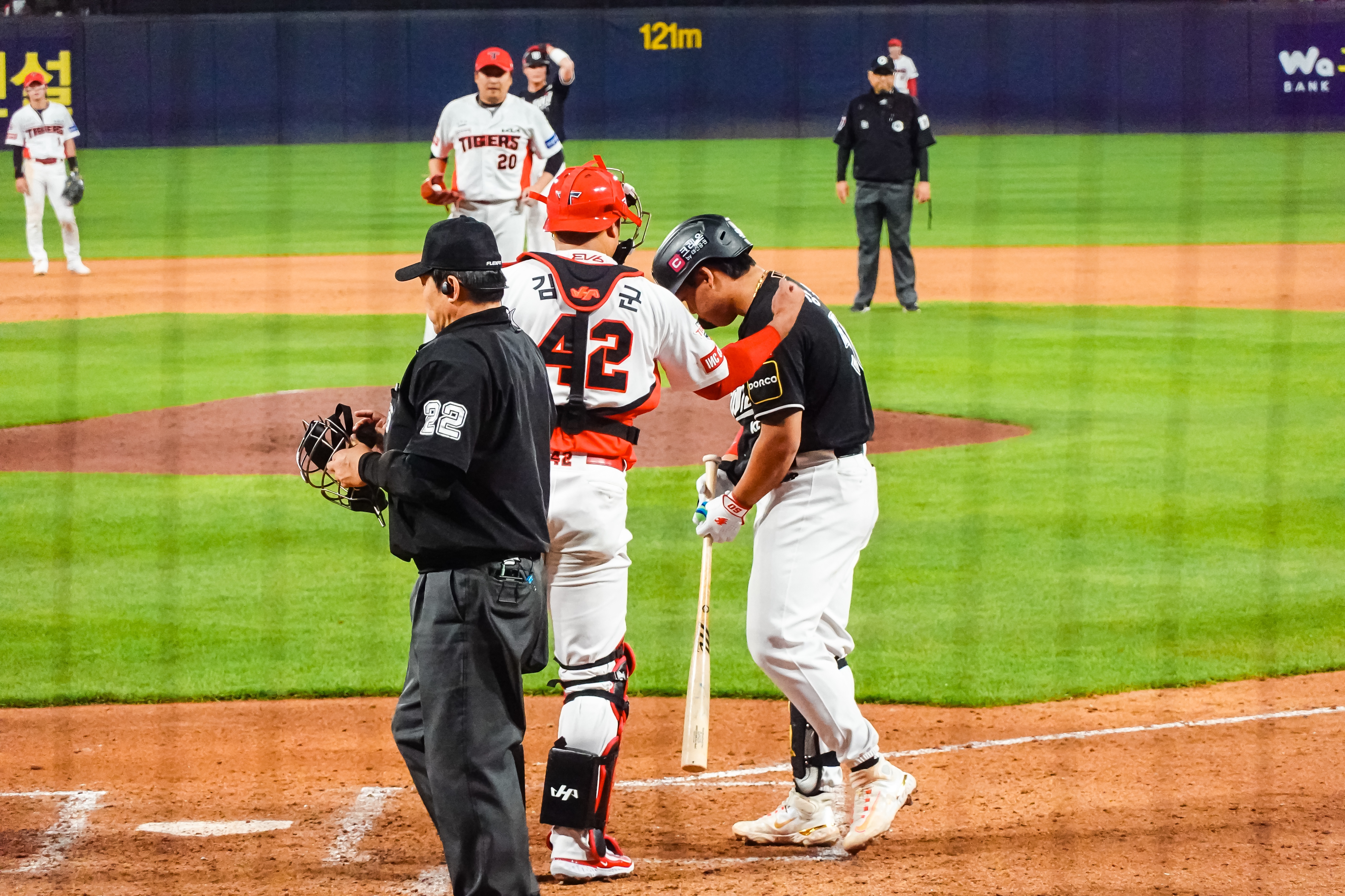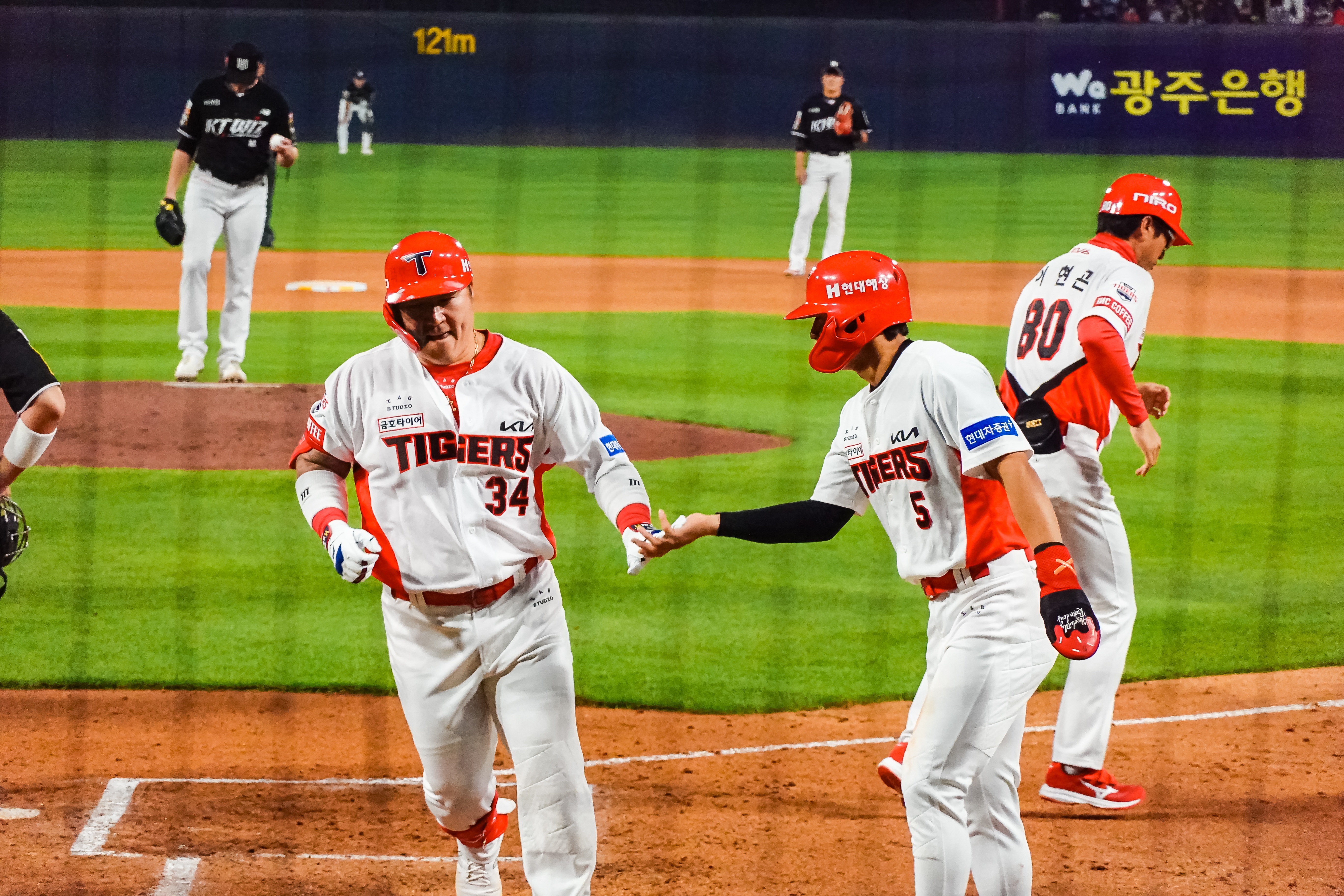 김선빈 선수의 파울 타구가 발등을 맞는 모습을 보고 큰 부상이 아니길 바랐는데 다행히 일어나서 다시 타석에 들어서는 모습을 보니 안심이 되었습니다.