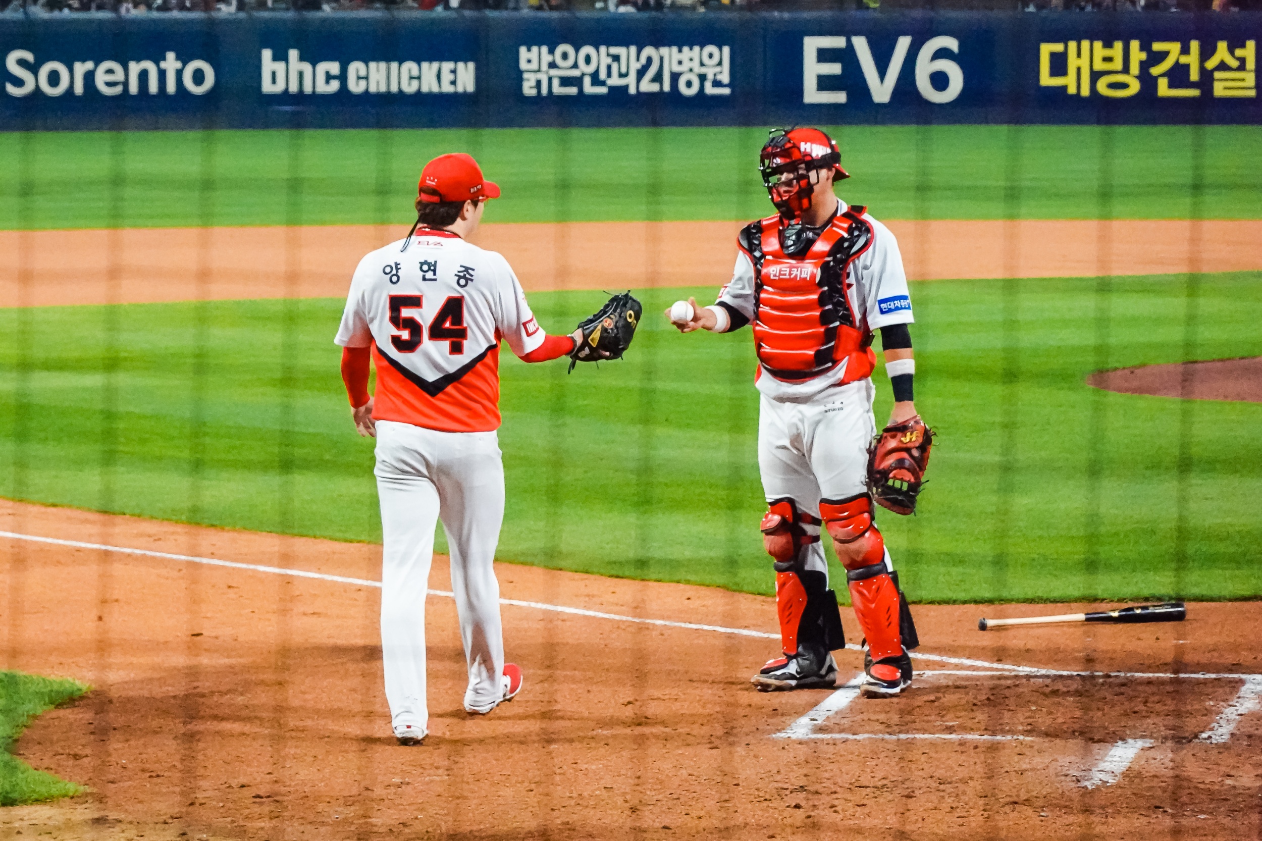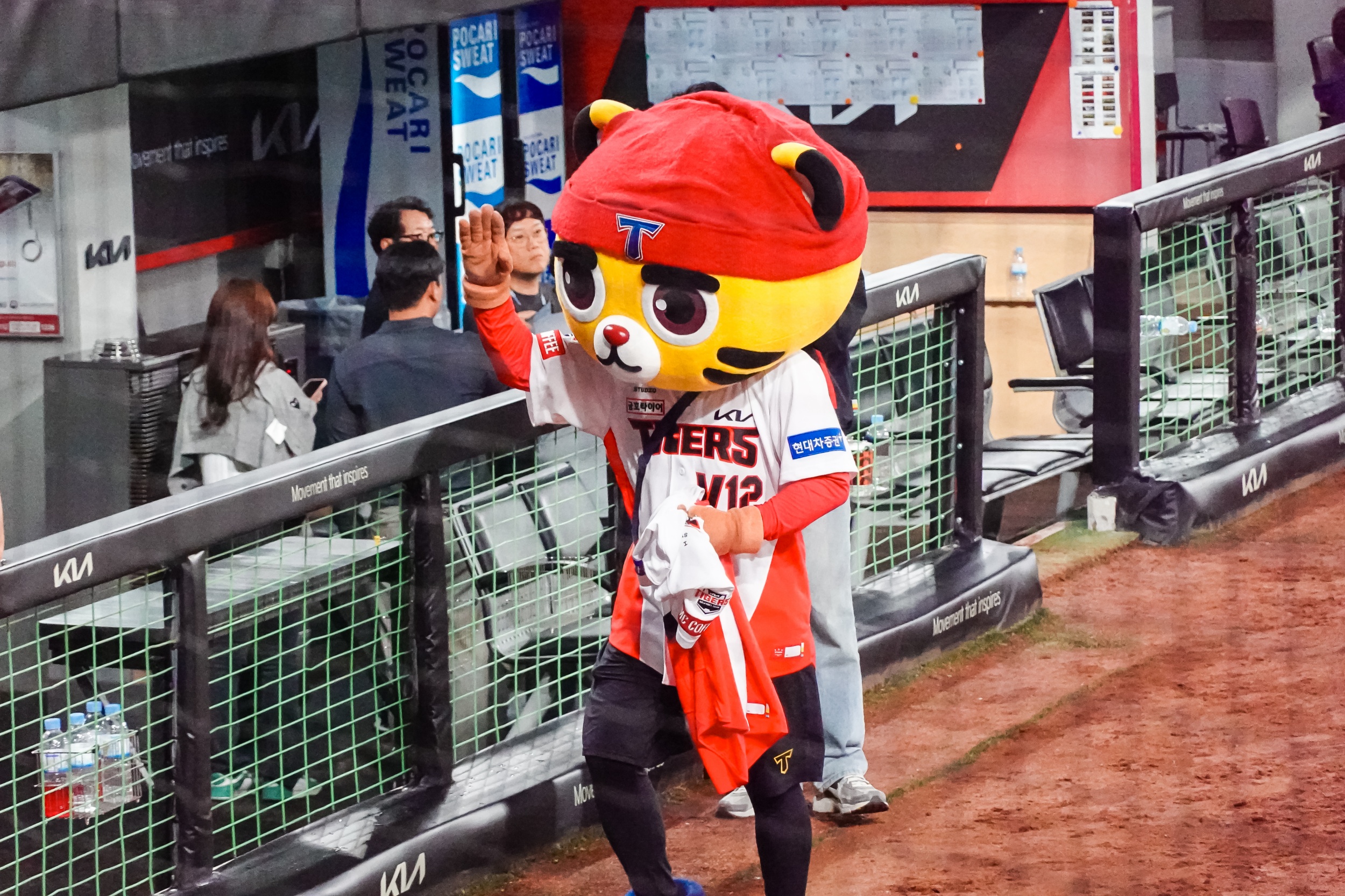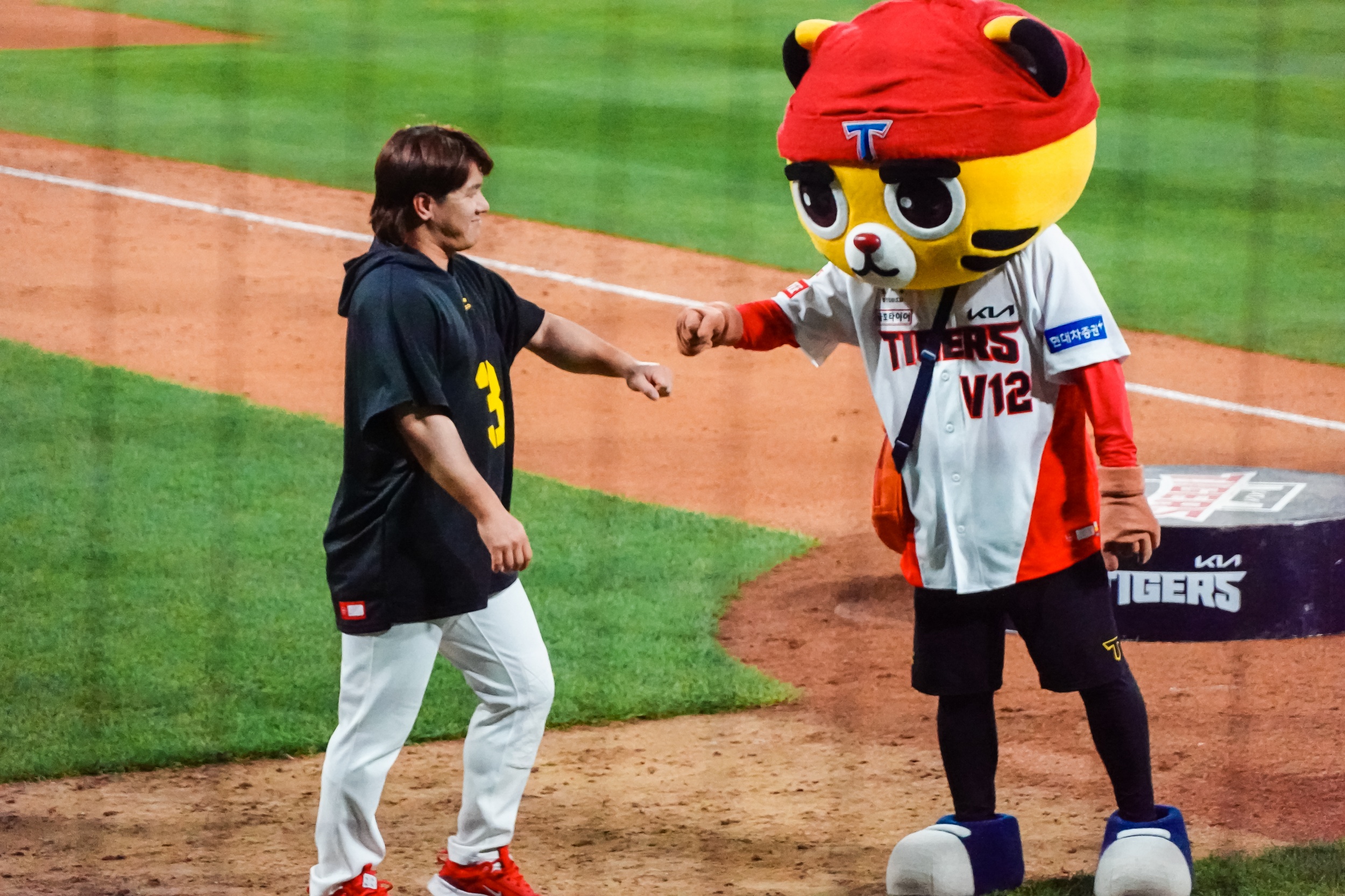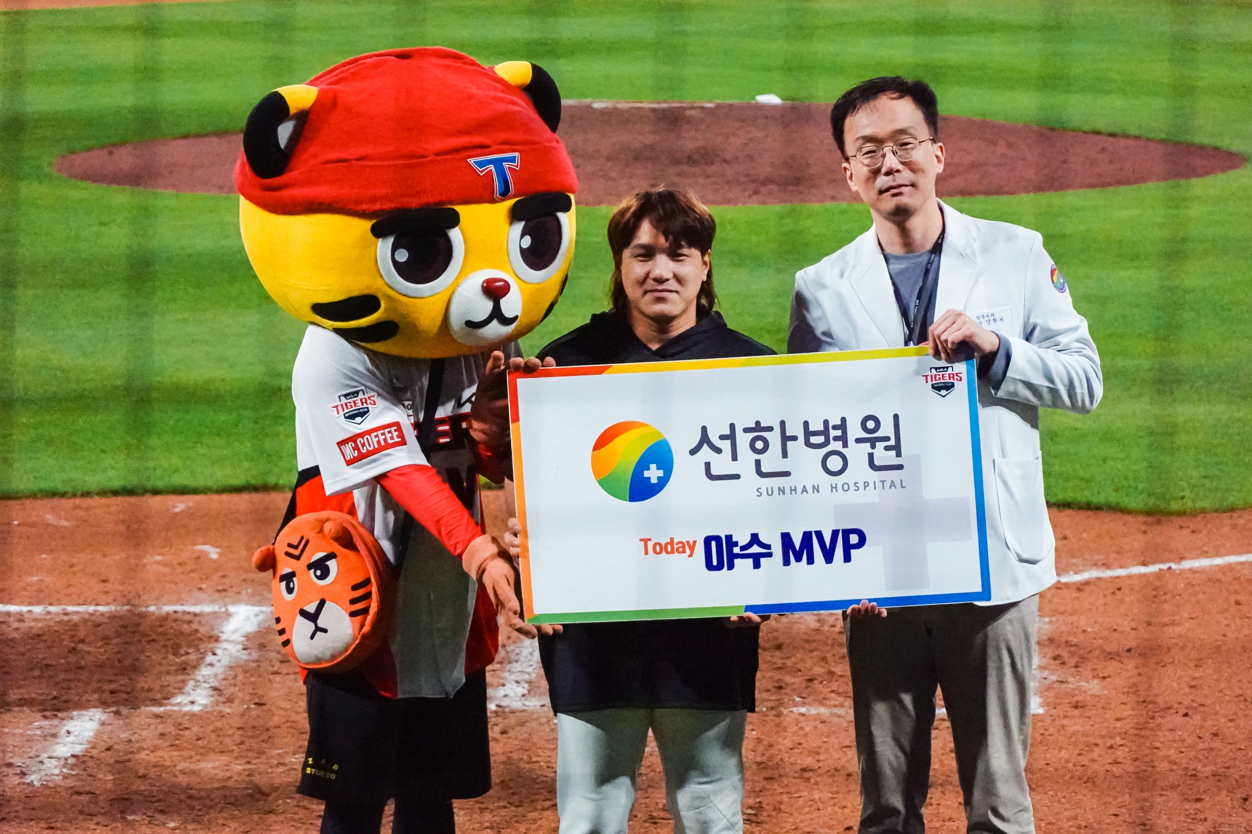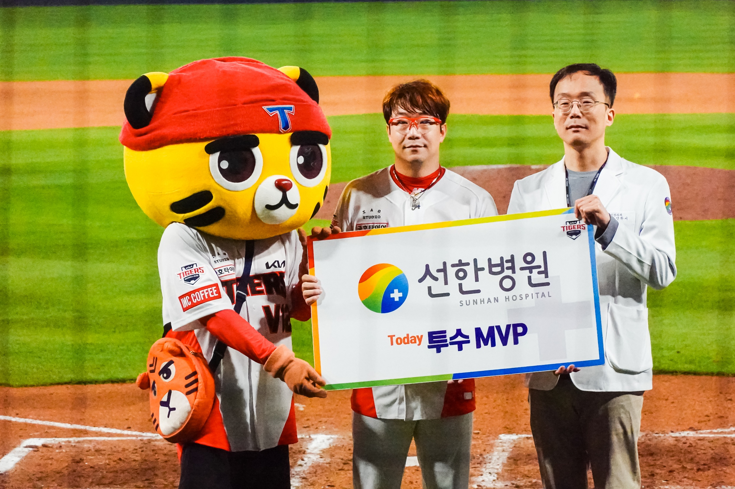 경기 종료 후 양현종 대투수는 서한국 단장에게 신발에 사인한 후 선물했고 호걸이에게는 유니폼을 사인한 후 선물했습니다.