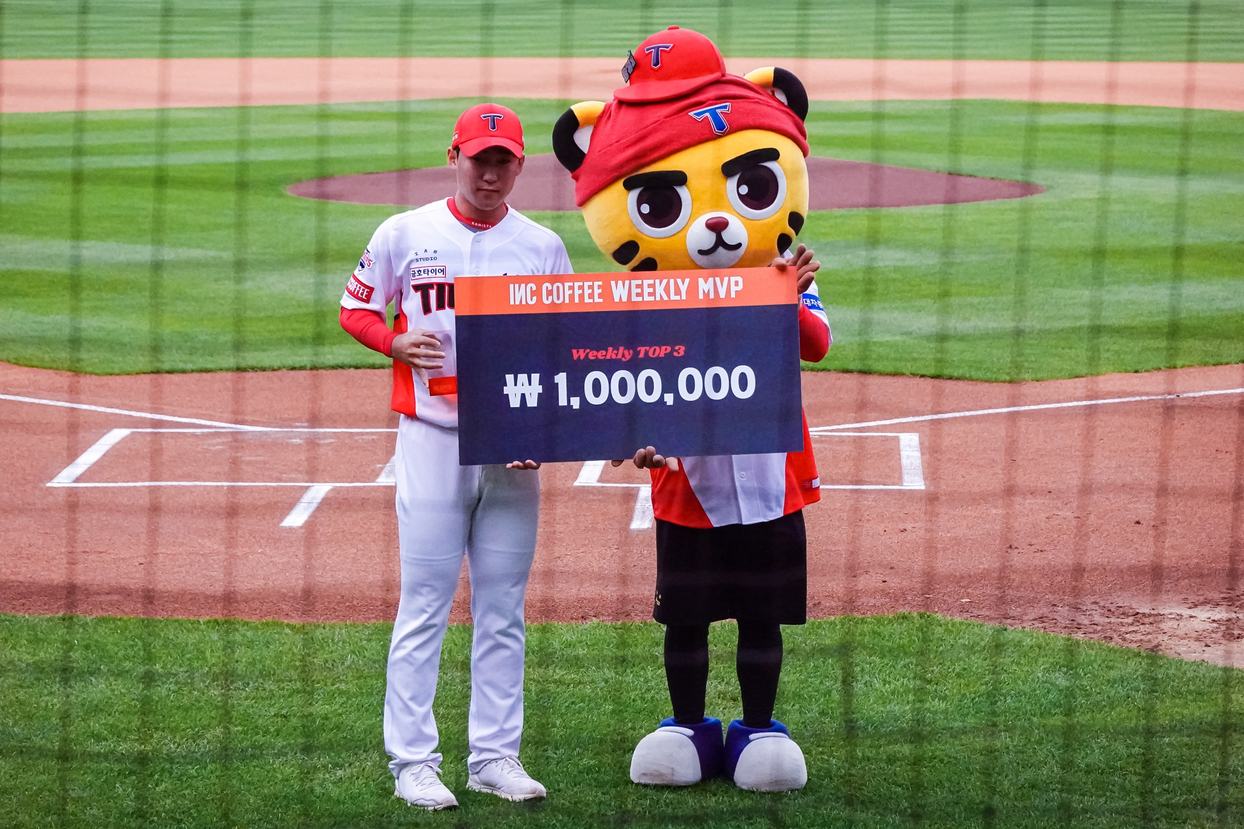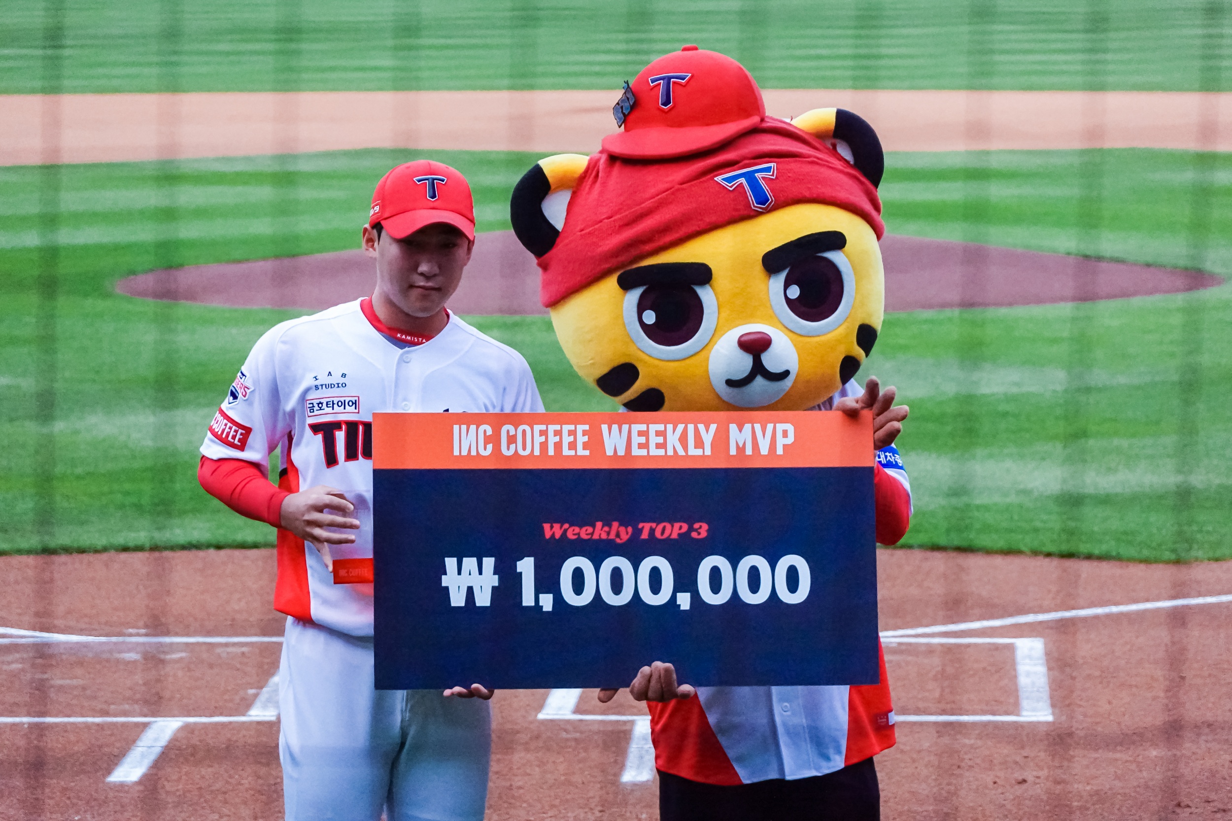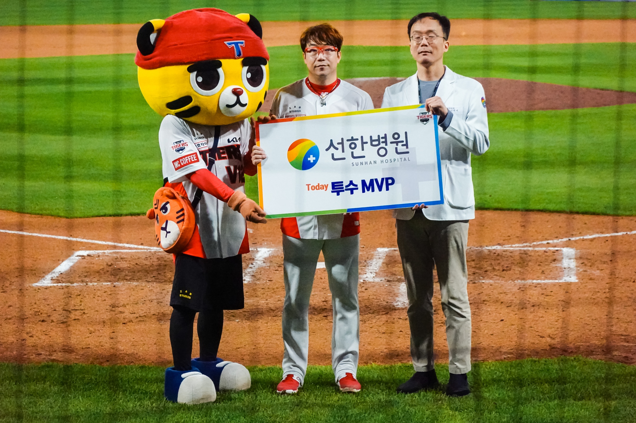 경기 전에 4월 4주 차 시상식이 열렸는데 MVP는 이창진, 소크라테스, 윤영철이 수비상에는 곽도규, 정해영 선수 등이 수상했습니다.