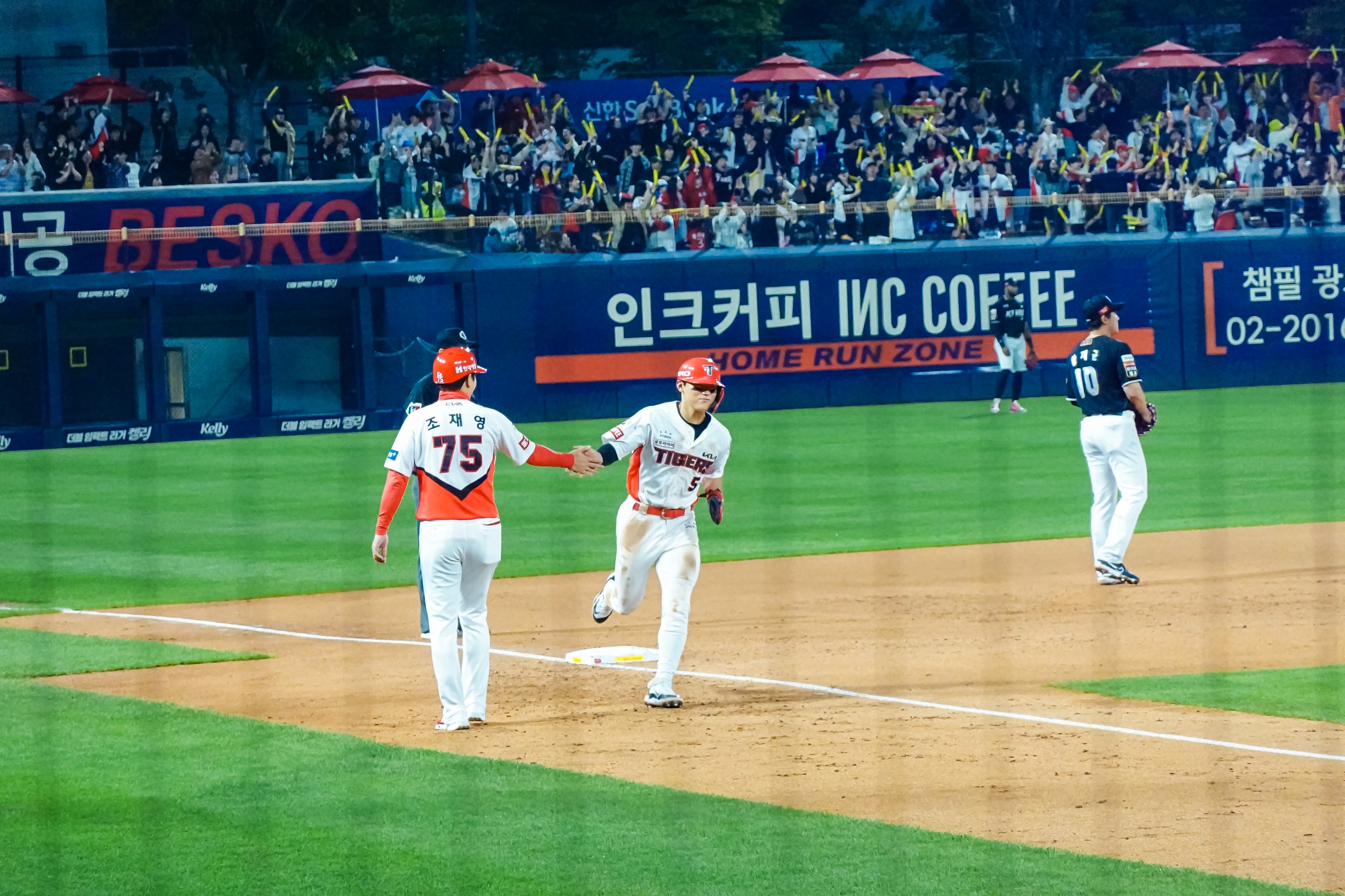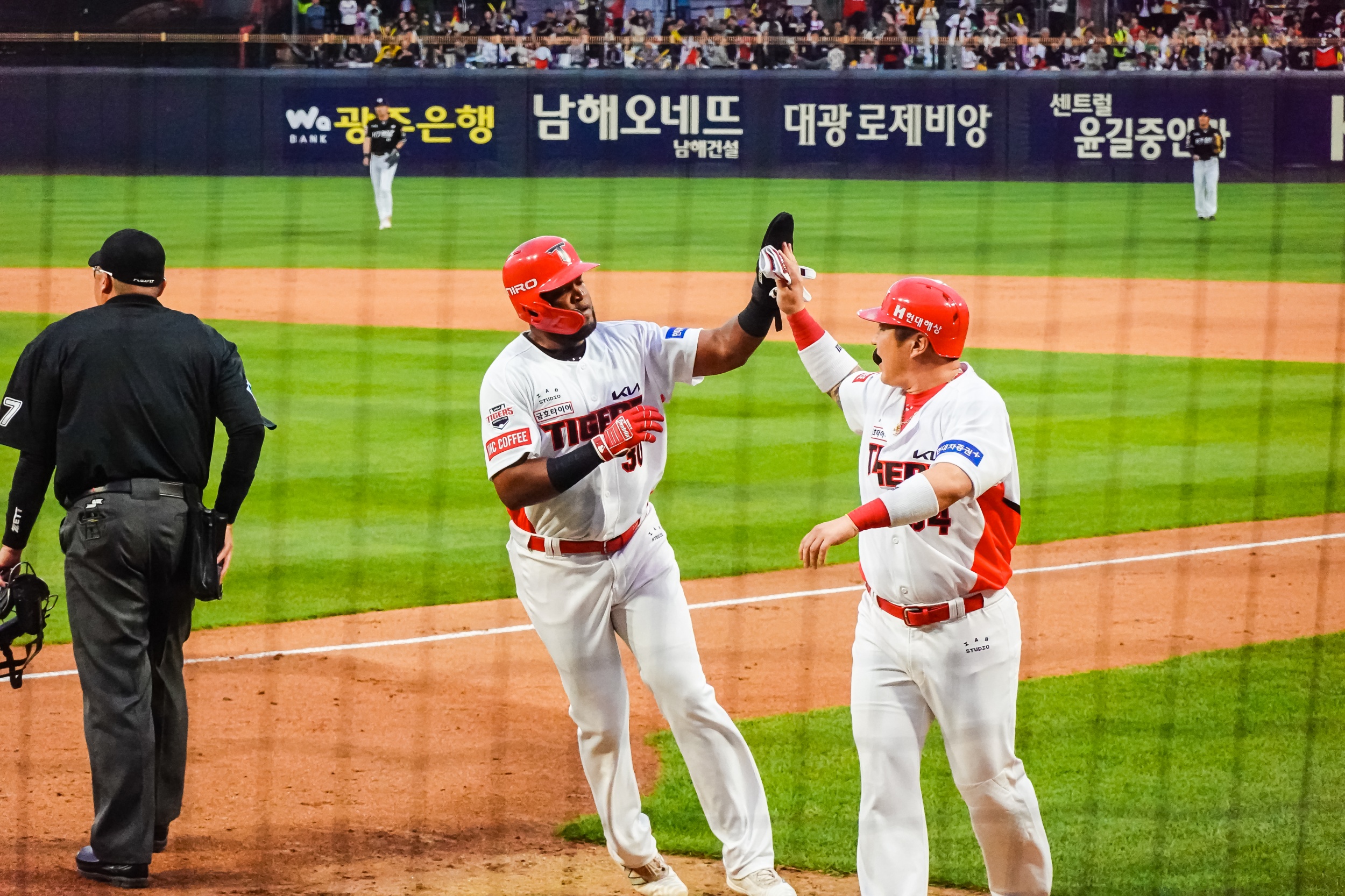 김선빈과 최형우가 각각 투런홈런포를 쏘아 올렸으며 이우성의 대타로 나성범이 그라운드에 등장하자 엄청난 함성과 응원소리가 울려 퍼졌는데 1루 땅볼 아웃으로 그쳐서 아쉬웠습니다.