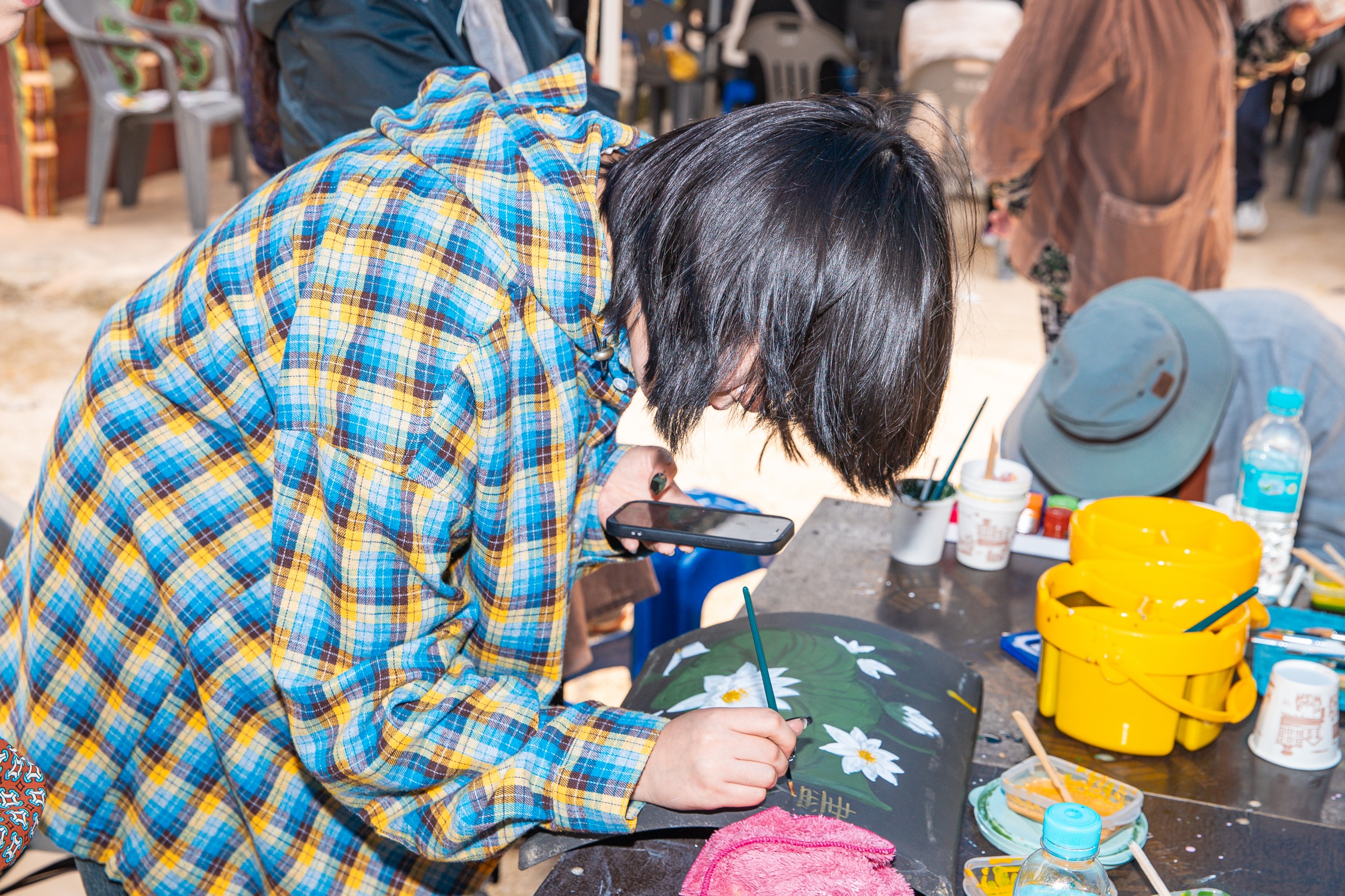 대웅전 마당에서는 비로 약차 시음 행사, 단청문양 도예, 문화재 톡톡 블록, 미니 연등 만들기, 에코백 색칠 등 온 가족이 함께 즐길 수 있는 활기 가득한 축제의 장이 종일 이어졌습니다.