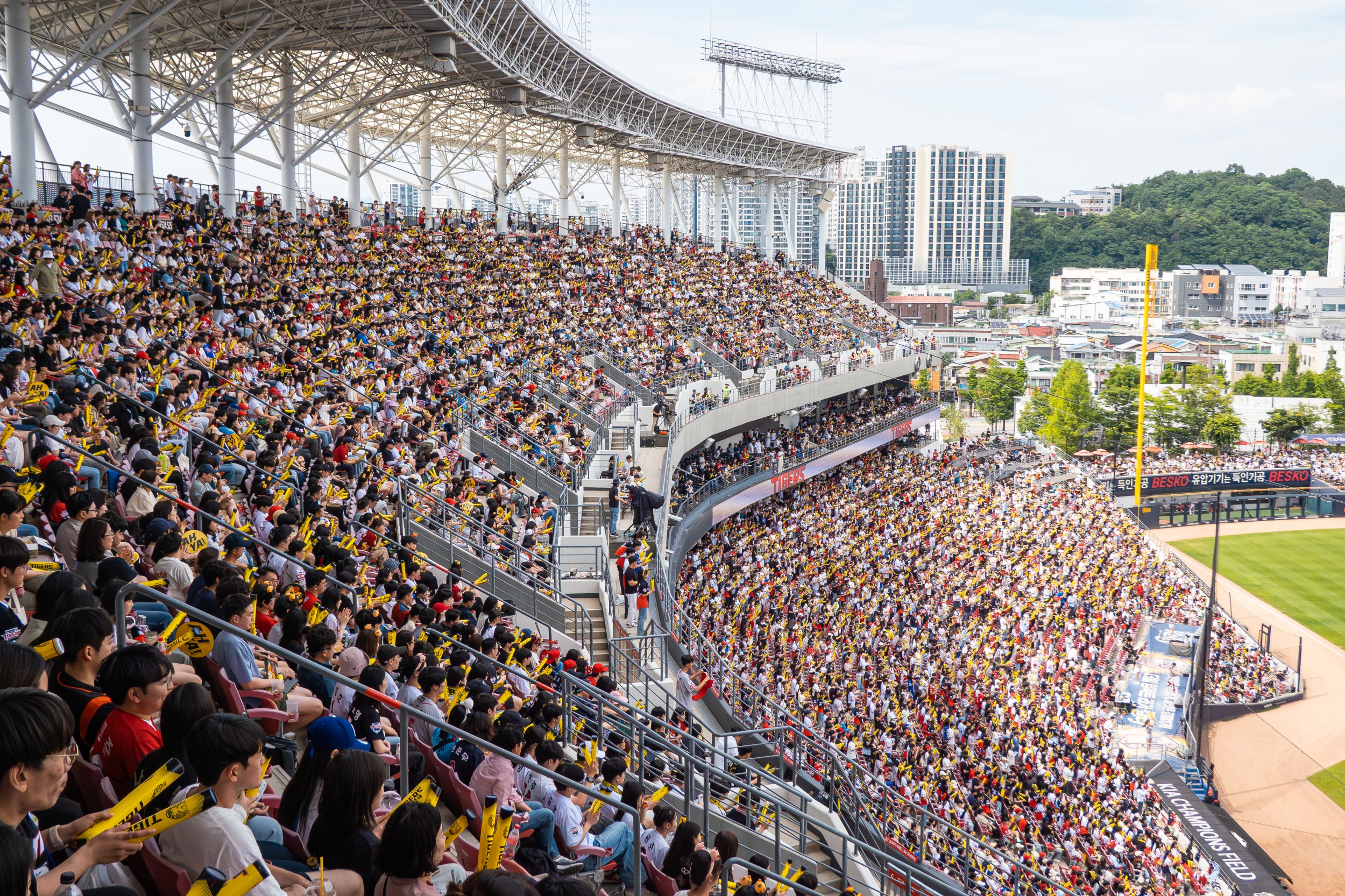 6월 6일 광주-기아 챔피언스 필드에서 열린 롯데자이언츠와 2024 신한 SOL뱅크 KBO 리그 시즌 8차전에서 경기 시작 1시간20분 전인 낮 12시40분을 기해 2만500석의 전석 매진되었으며 16번째 만원 관중을 기록했습니다.