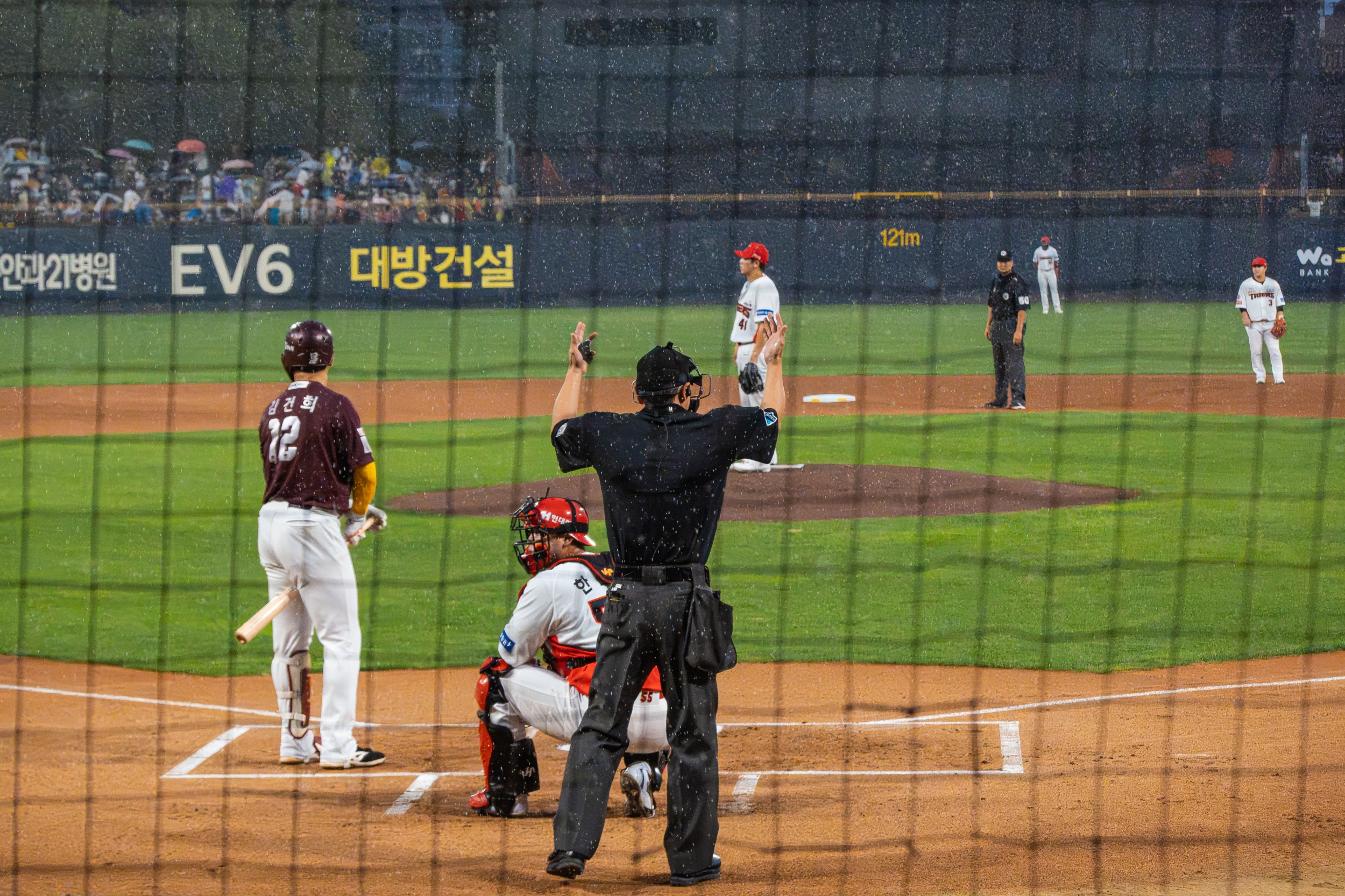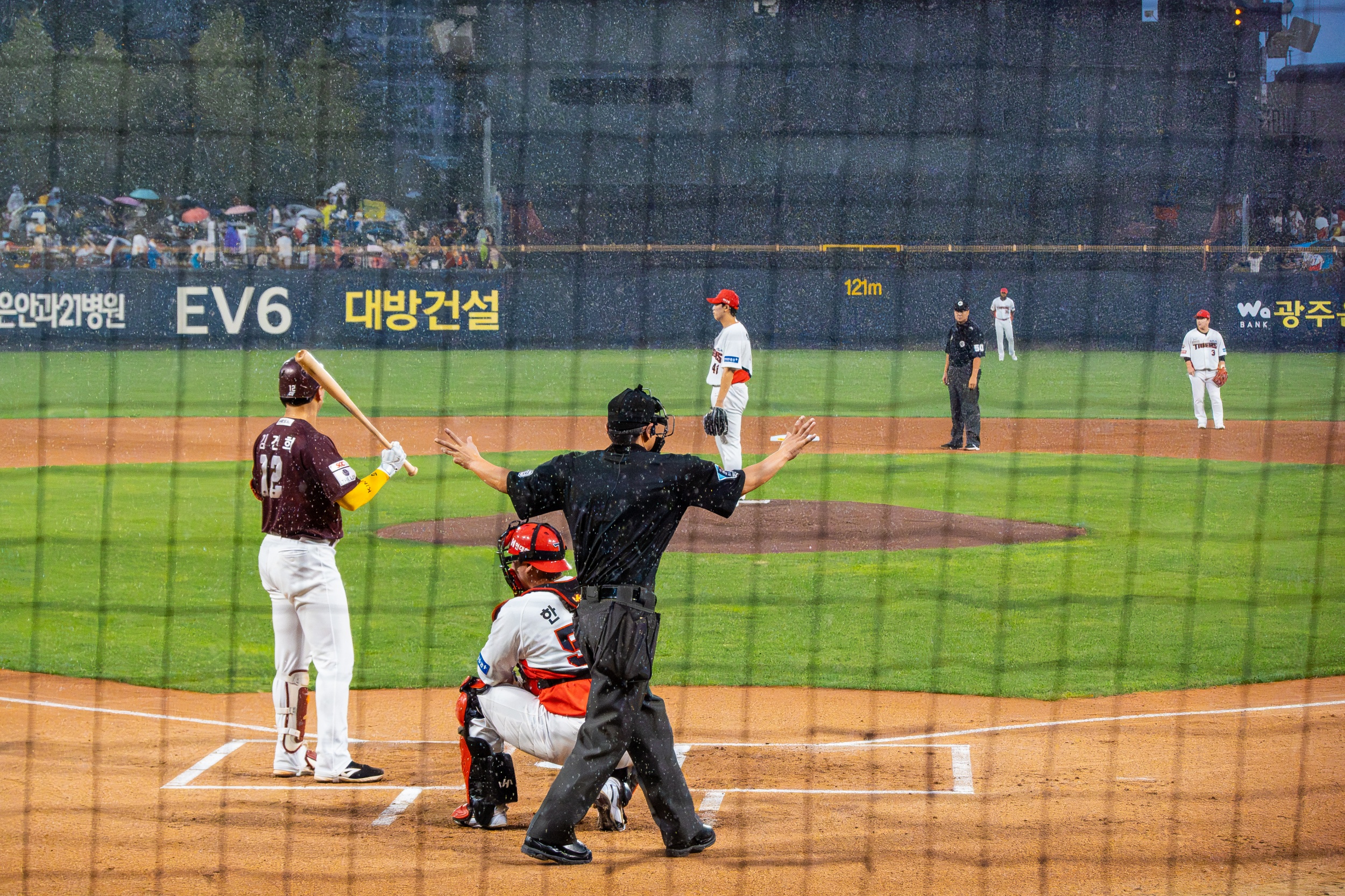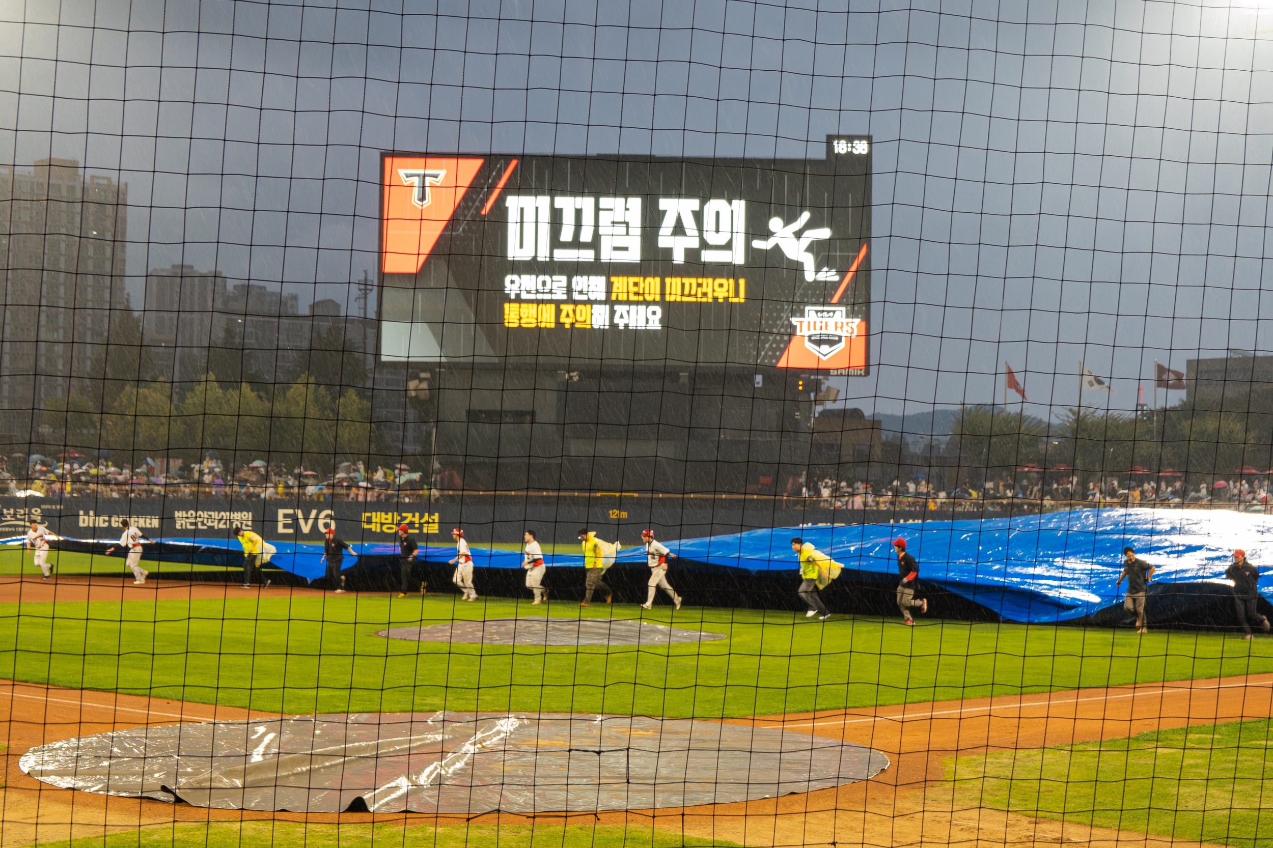 1회초 갑작스런 폭우로 경기는 1시간 13분 중단 됐다 재개되었고 14-0 대승을 거두며 정규시즌 우승을 위한 매직넘버를 '9'로 줄였습니다.
