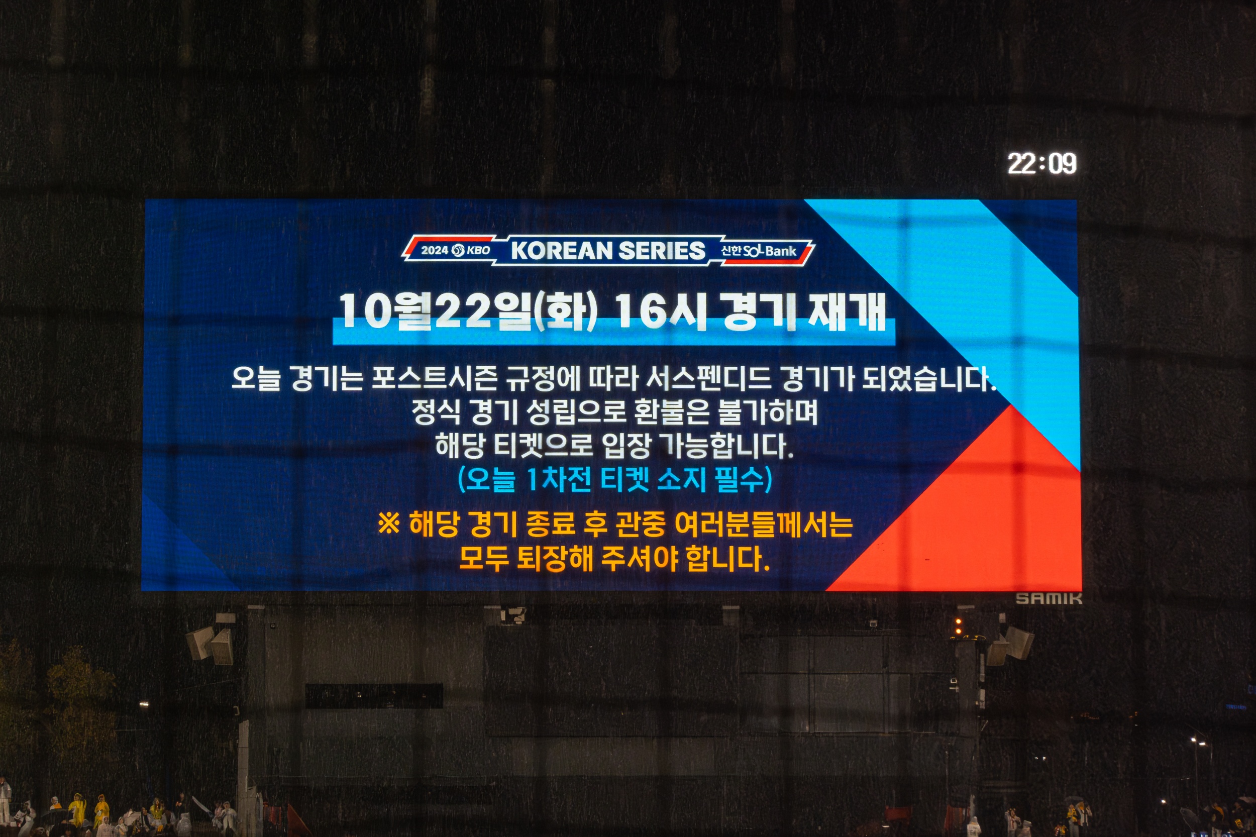 KIA-삼성 한국시리즈 1차전 | 서스펜디드 게임 선언(10월 21일)