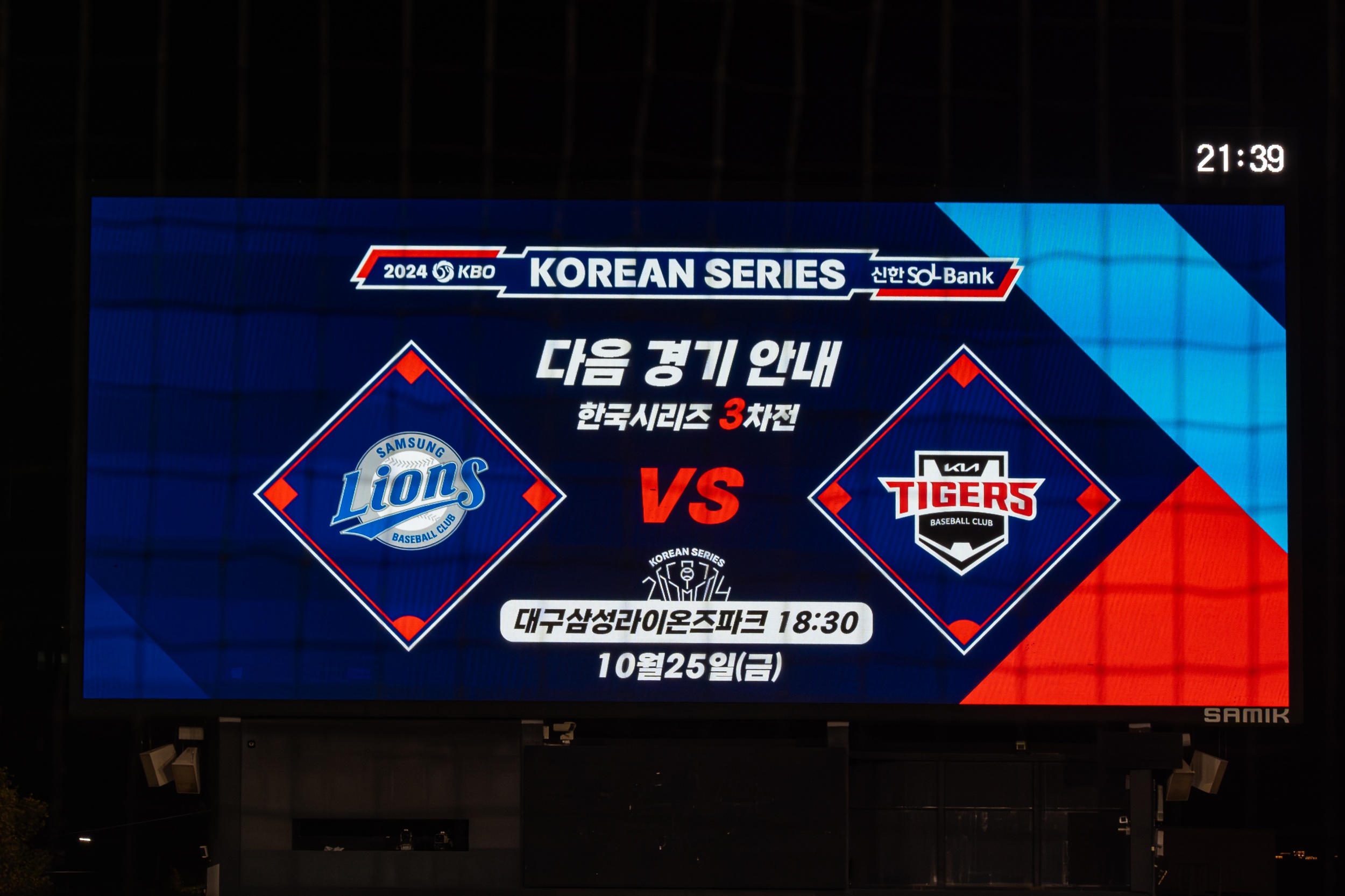 한국시리즈 3차전은 25일 오후 6시 30분 대구 삼성 라이온즈 파크로 옮겨 열립니다.