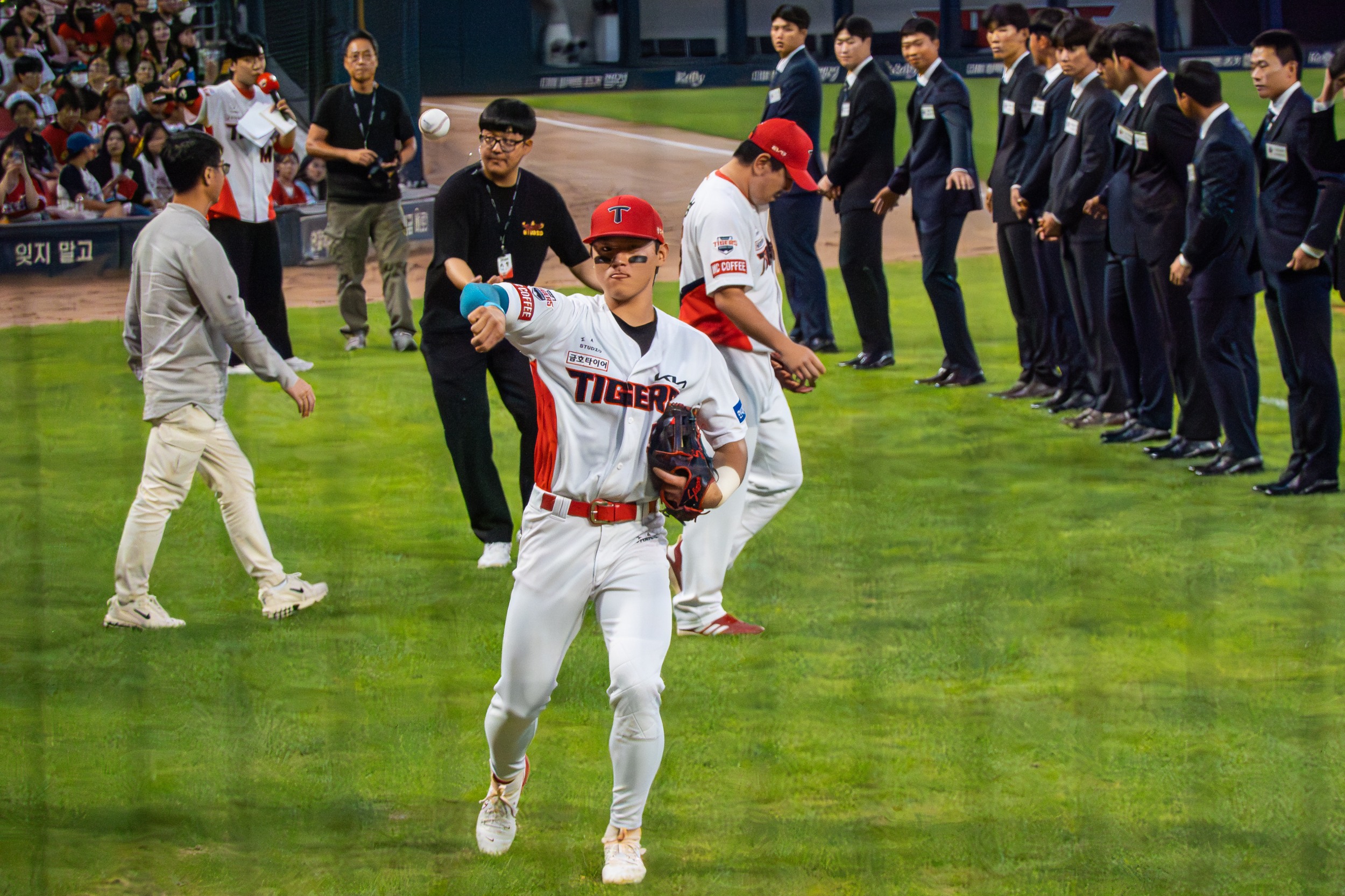 삼성과 경기전 2025년 KIA 타이거즈 신인 선수단들의 입단 환영식이 열려 소개, 부모님께 큰절, 유니폼 착복식, 애국가 제창, 승리기원시구와 시포 행사가 있었습니다.
