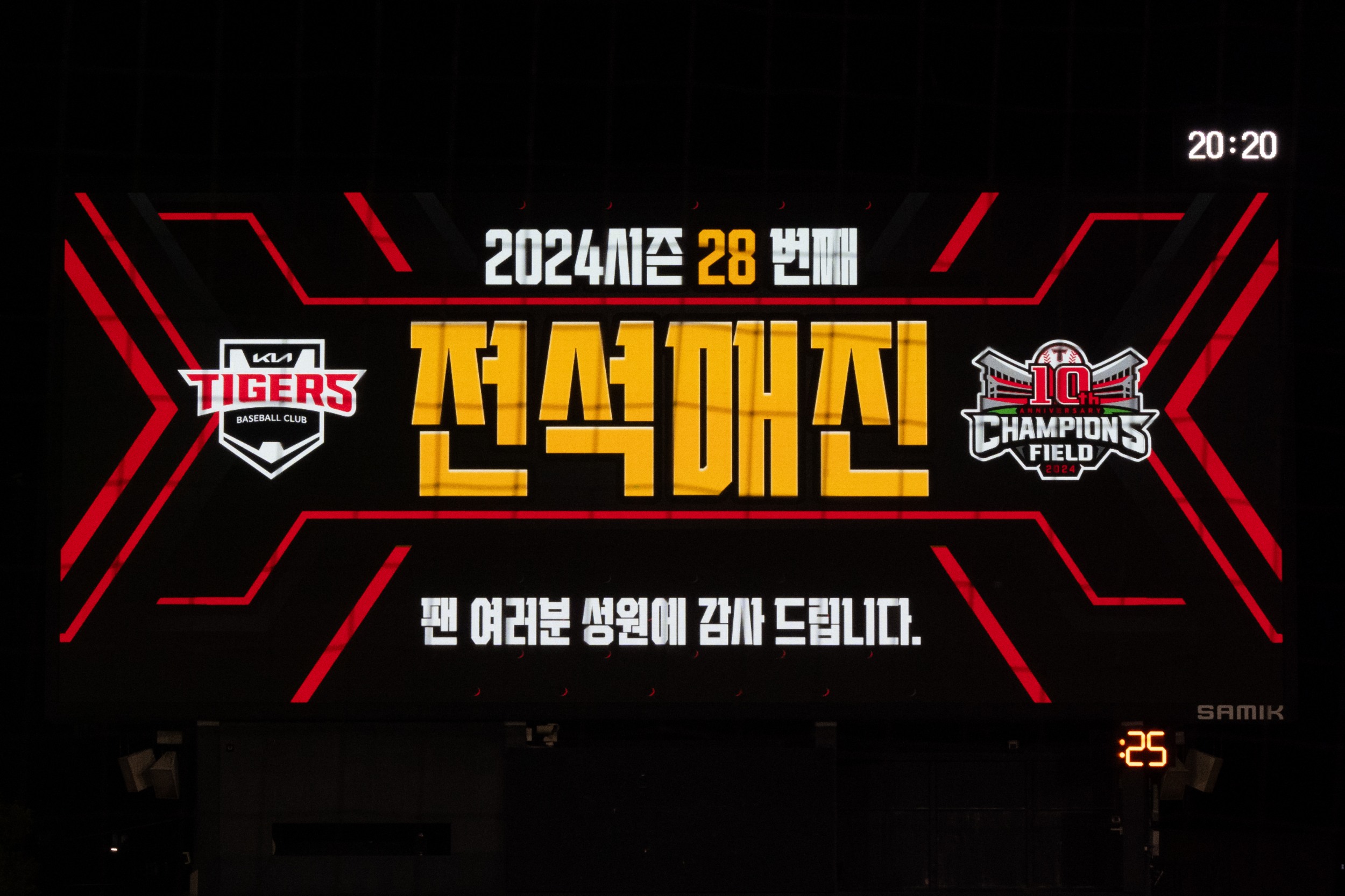 KIA타이거즈는 28번째 전석 매진에 이어 홈 7경기 연속 매진을 달성하면서 구단 역사상 최다 매진 신기록을 세웠습니다.