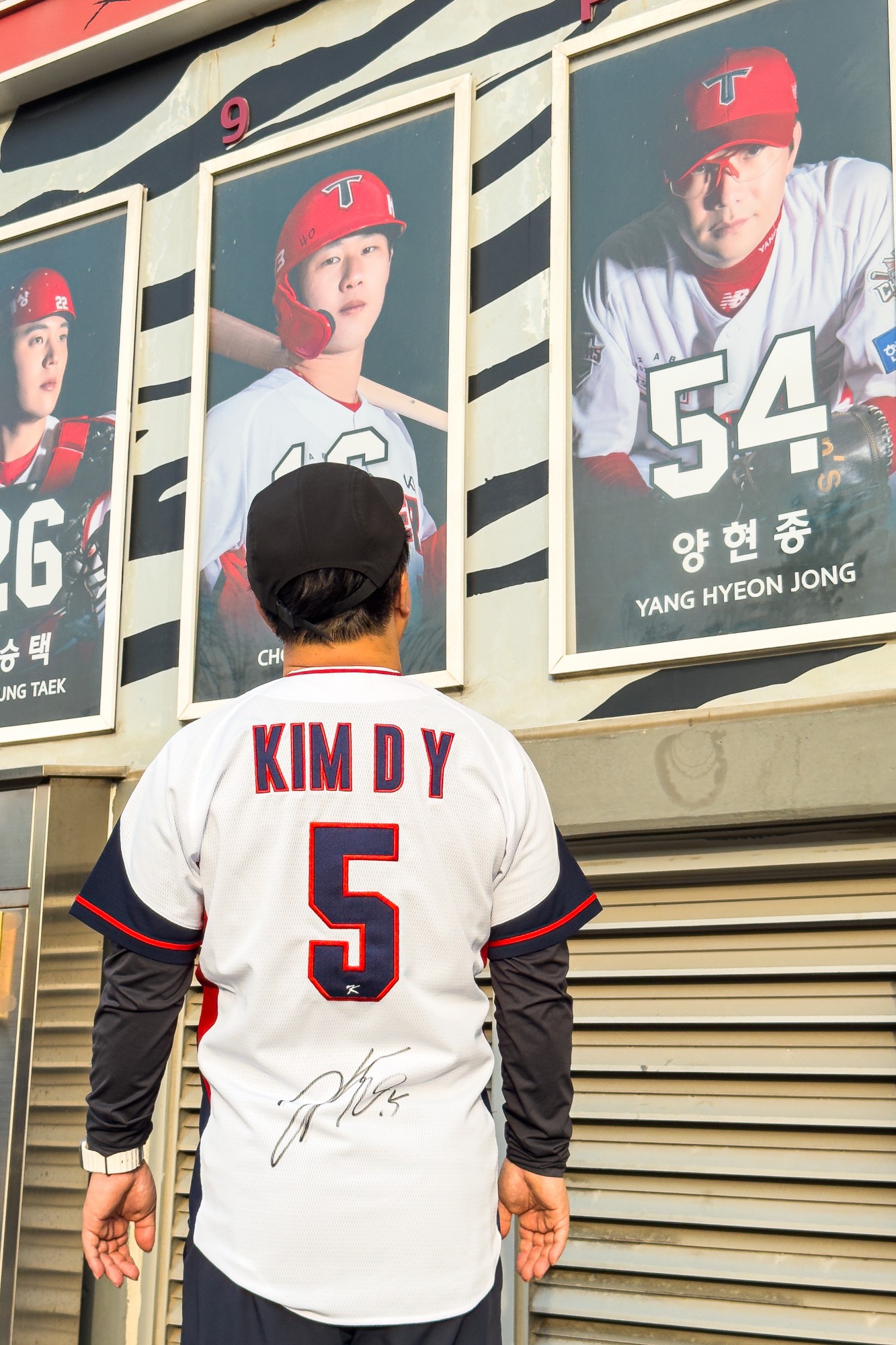 함평 퓨처스에서 사인 받은 김도영 국대 유니폼 입고 라인업 앞에서