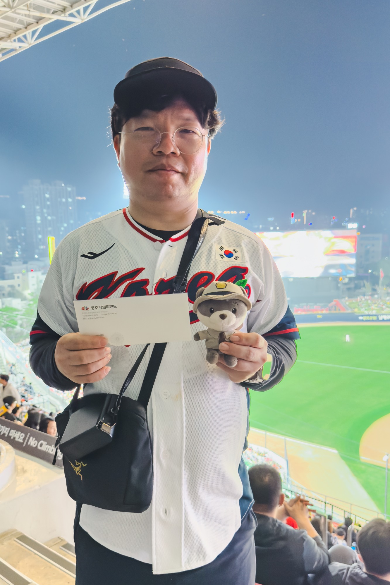 함평 퓨처스에서 사인 받은 김도영 국대 유니폼 입고 라인업 앞에서