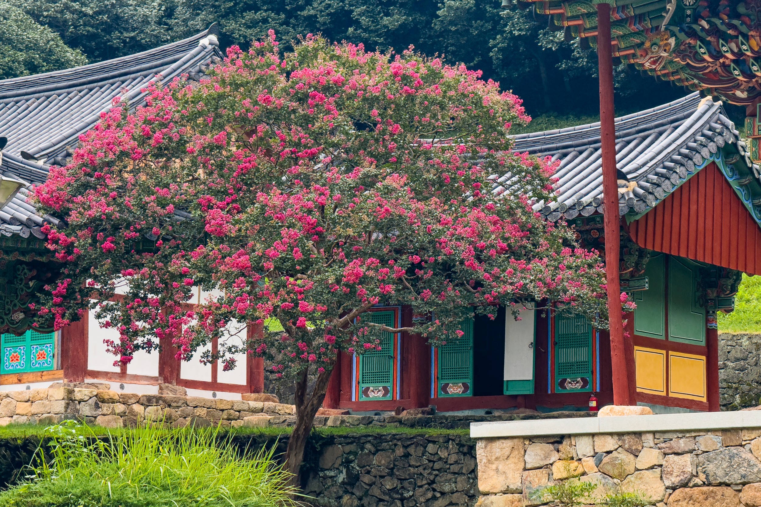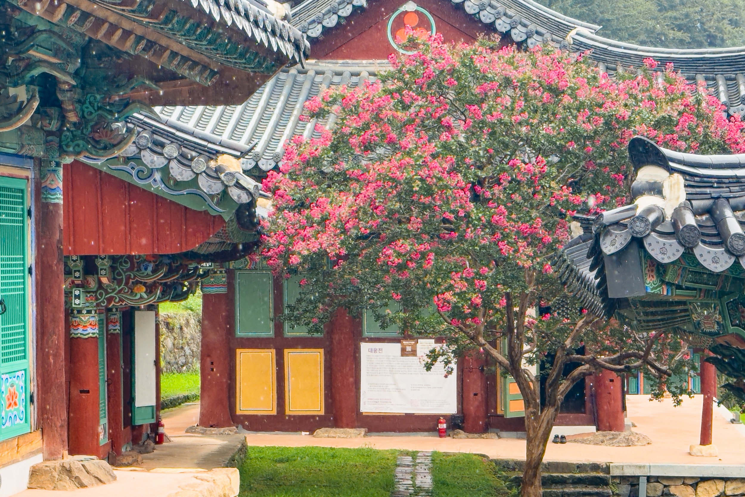 <우중불회사(雨中佛會寺)> 이따금 바람이 스며들어 풍경(風磬)을 흔들면, 그 맑은 소리 빗줄기 속에 스며들어 마음을 씻어내는 차가운 염불이 된다. 한여름 붉던 배롱나무 꽃잎은 눈물처럼 젖어 흙마당에 조용히 떨어져, 선명한 점 하나를 찍는다. 경내엔 빗소리만 가득한데, 젖은 단청과 푸른 이끼 빛은 오히려 자기 빛을 더 깊이 찾아가는 고즈넉함. 아이폰 15 프로 맥스 2025. 08. 10 #나주 #나주불회사 #배롱나무 #백일홍 #불회사 #나주사찰 #템플스테이 #불회사템플 #불회사백일홍 #불회사배롱나무 #나주여행 #나주가볼만한곳 #관음도량 #천년고찰 #여행에미치다 #대한민국구석구석 #석장승 #아이폰15사진 #아이폰15프로맥스