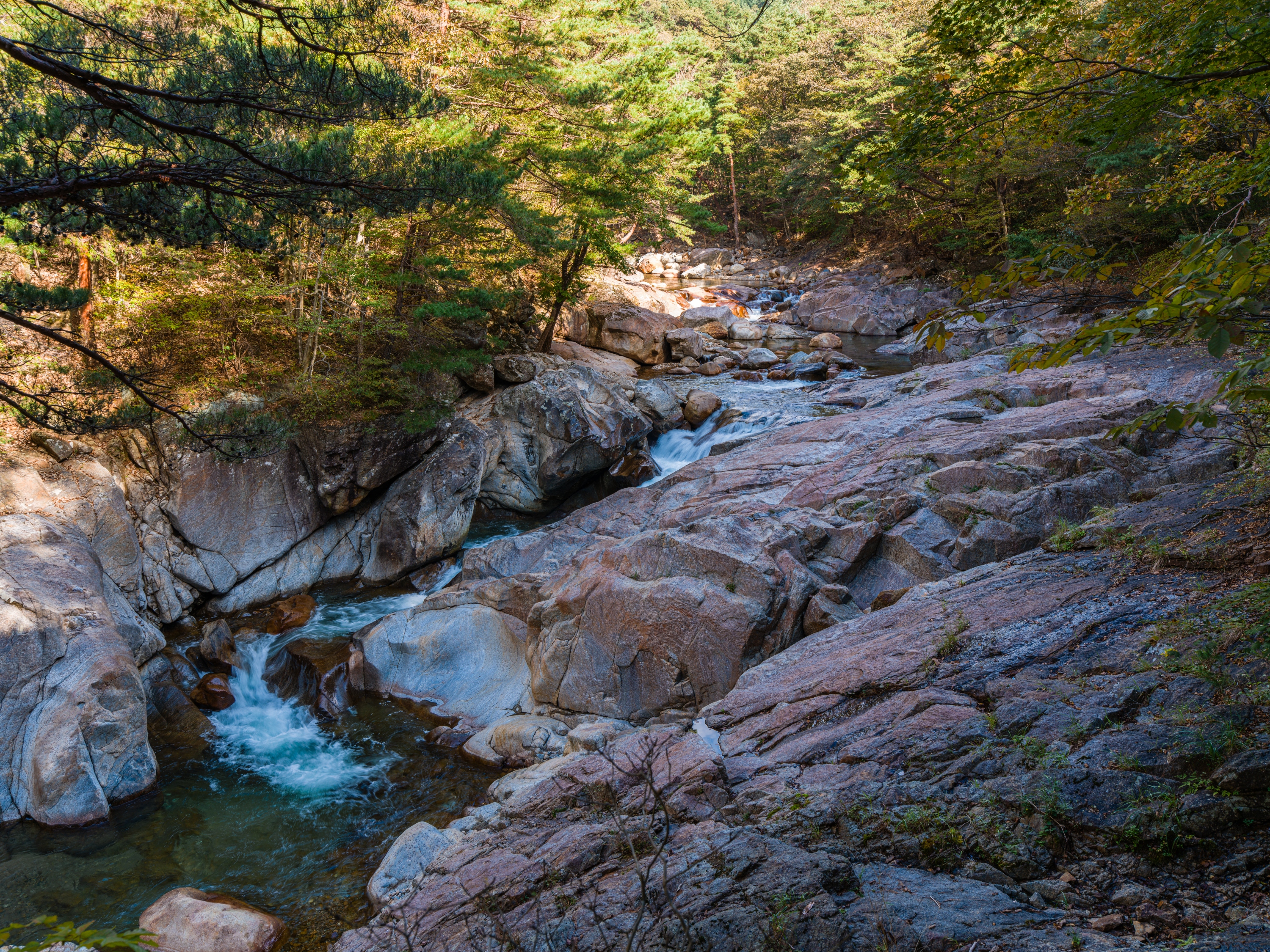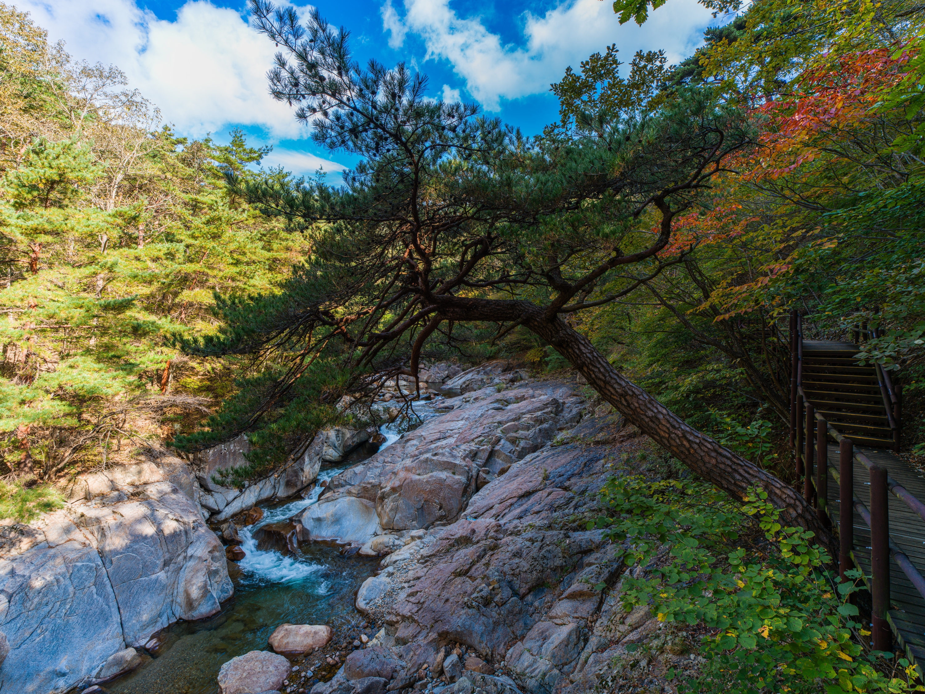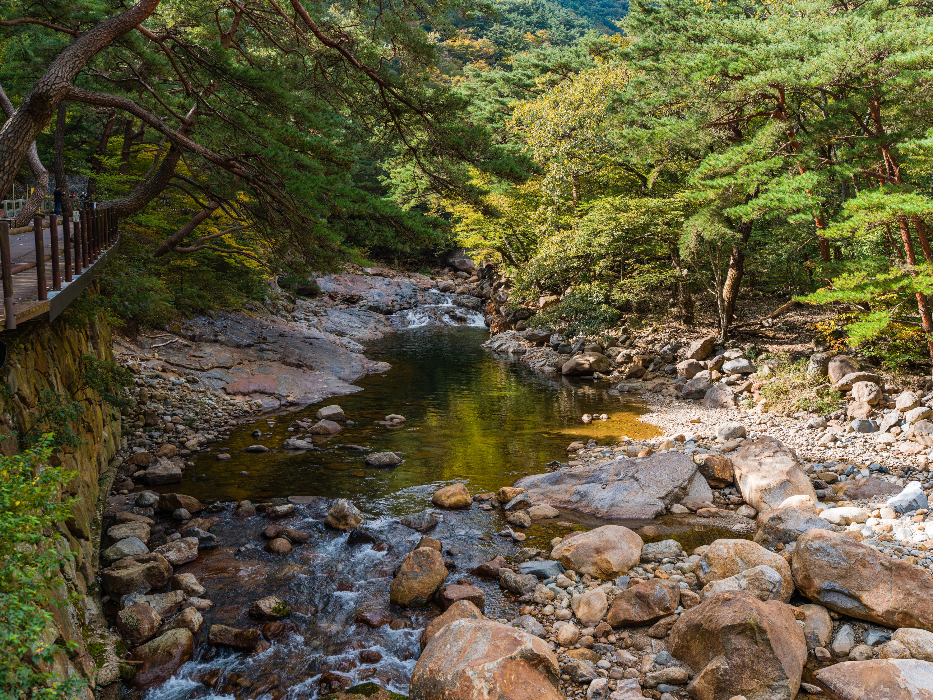 완만하게 정비된 데크길을 따라 걸으면 시리도록 맑은 계곡물, 기암괴석을 감도는 옥류소리, 울창한 금강 소나무의 바람소리, 산새들이 우짖는 대자연의 합창을 사시사철 느낄수 있으며, 가을에는 주위 경치와 어우러진 단풍 또한 빼어난 곳입니다.