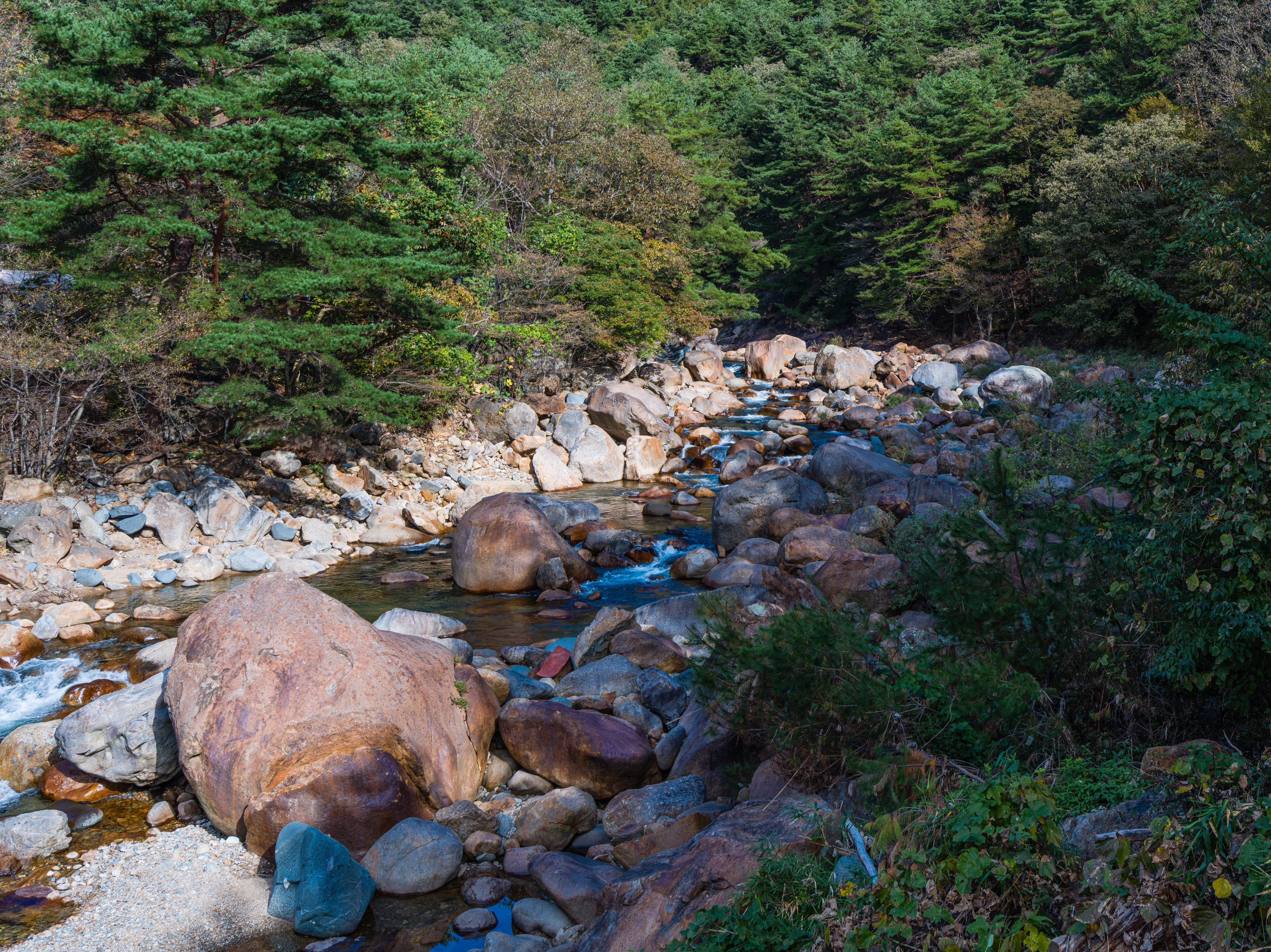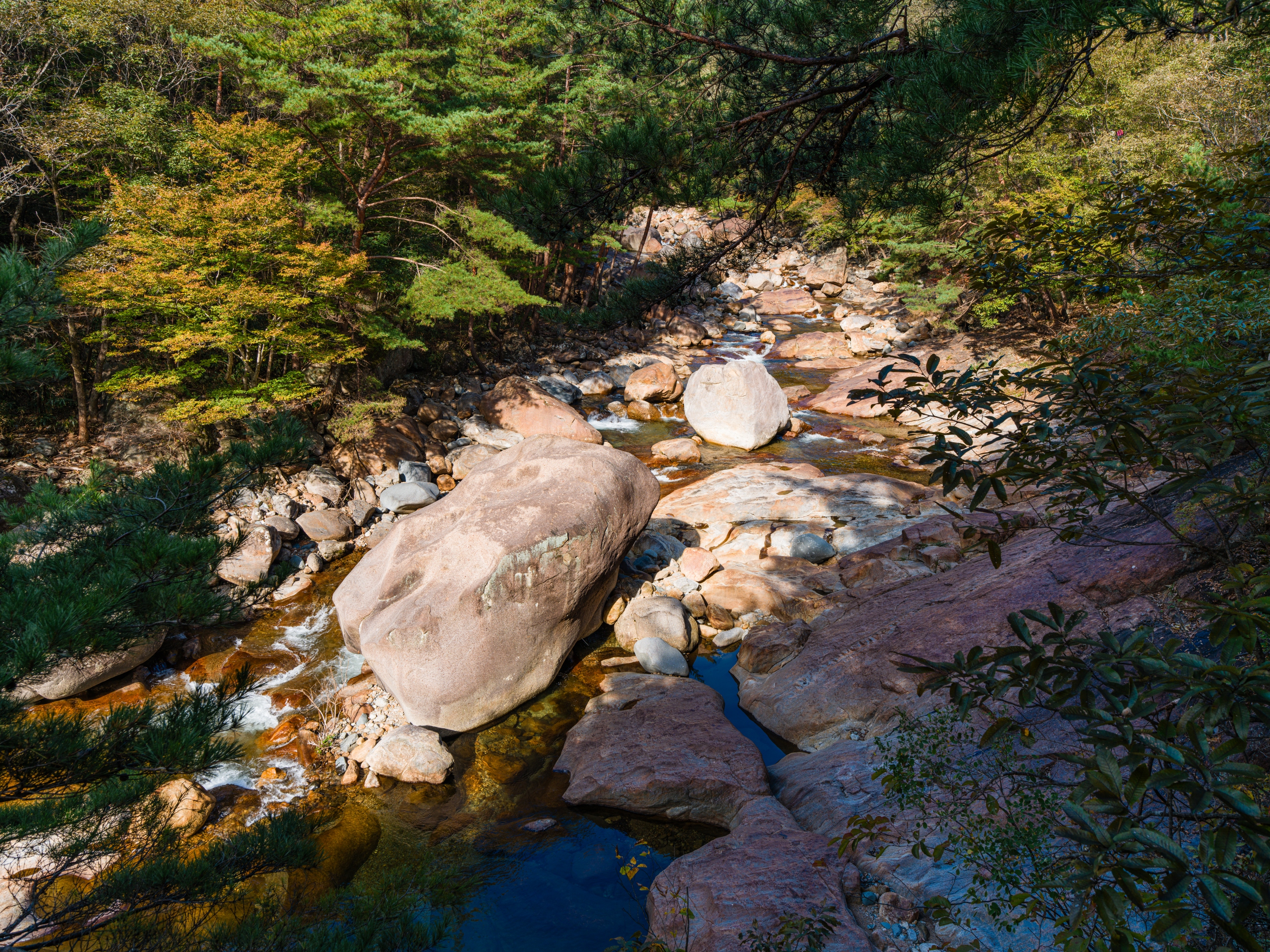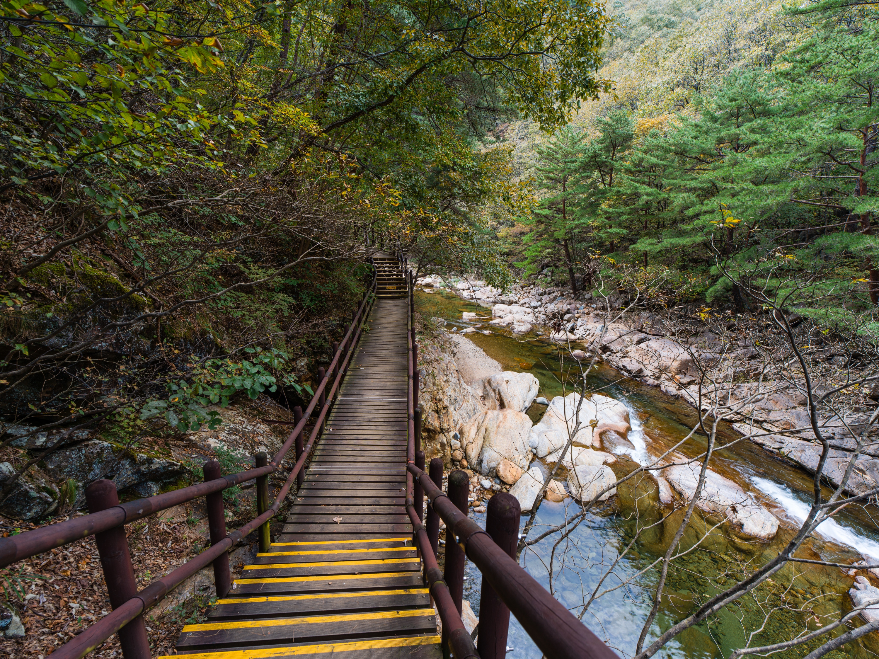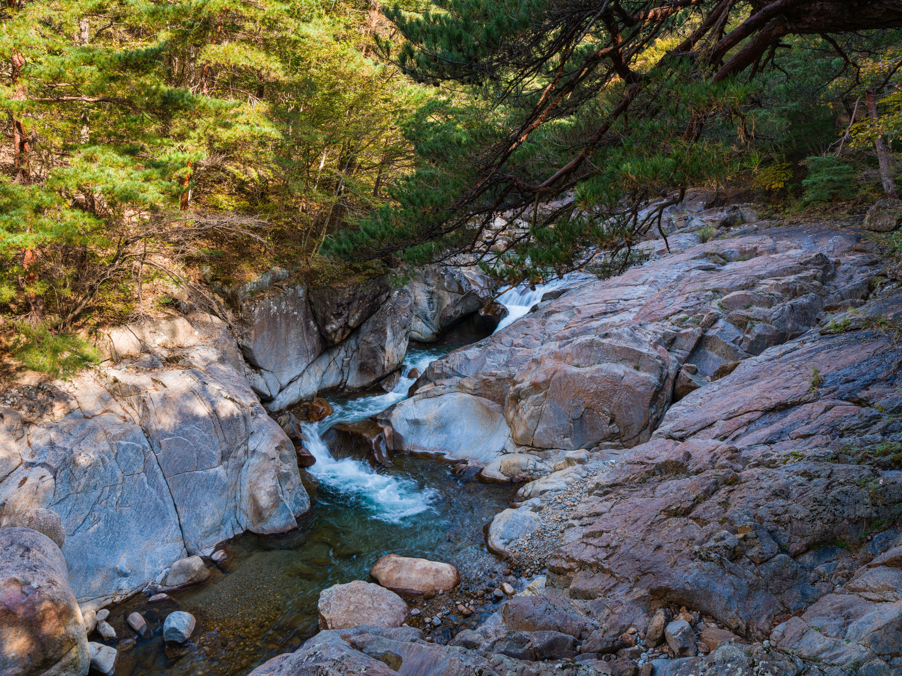 완만하게 정비된 데크길을 따라 걸으면 시리도록 맑은 계곡물, 기암괴석을 감도는 옥류소리, 울창한 금강 소나무의 바람소리, 산새들이 우짖는 대자연의 합창을 사시사철 느낄수 있으며, 가을에는 주위 경치와 어우러진 단풍 또한 빼어난 곳입니다.