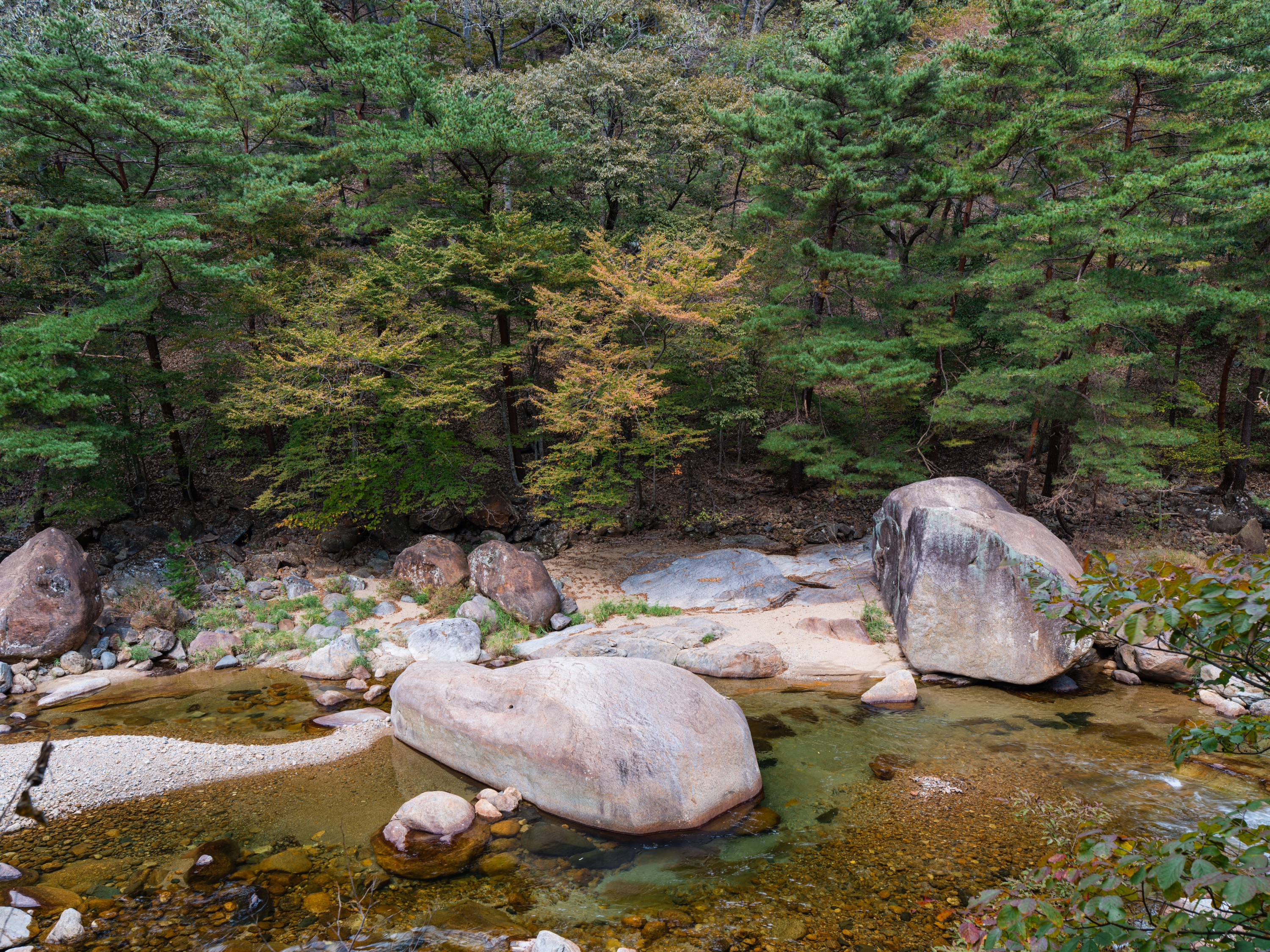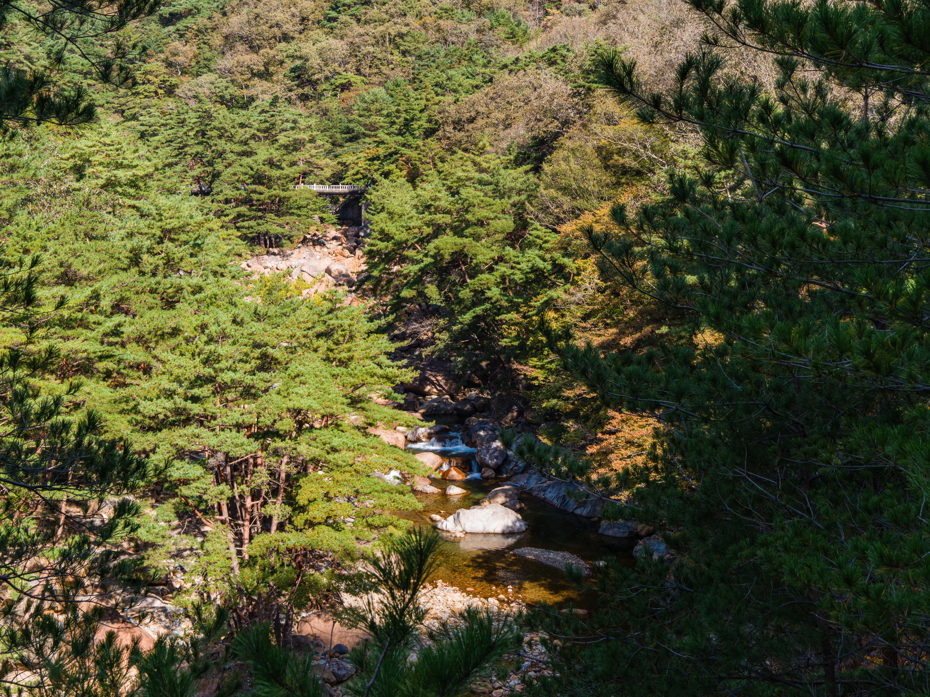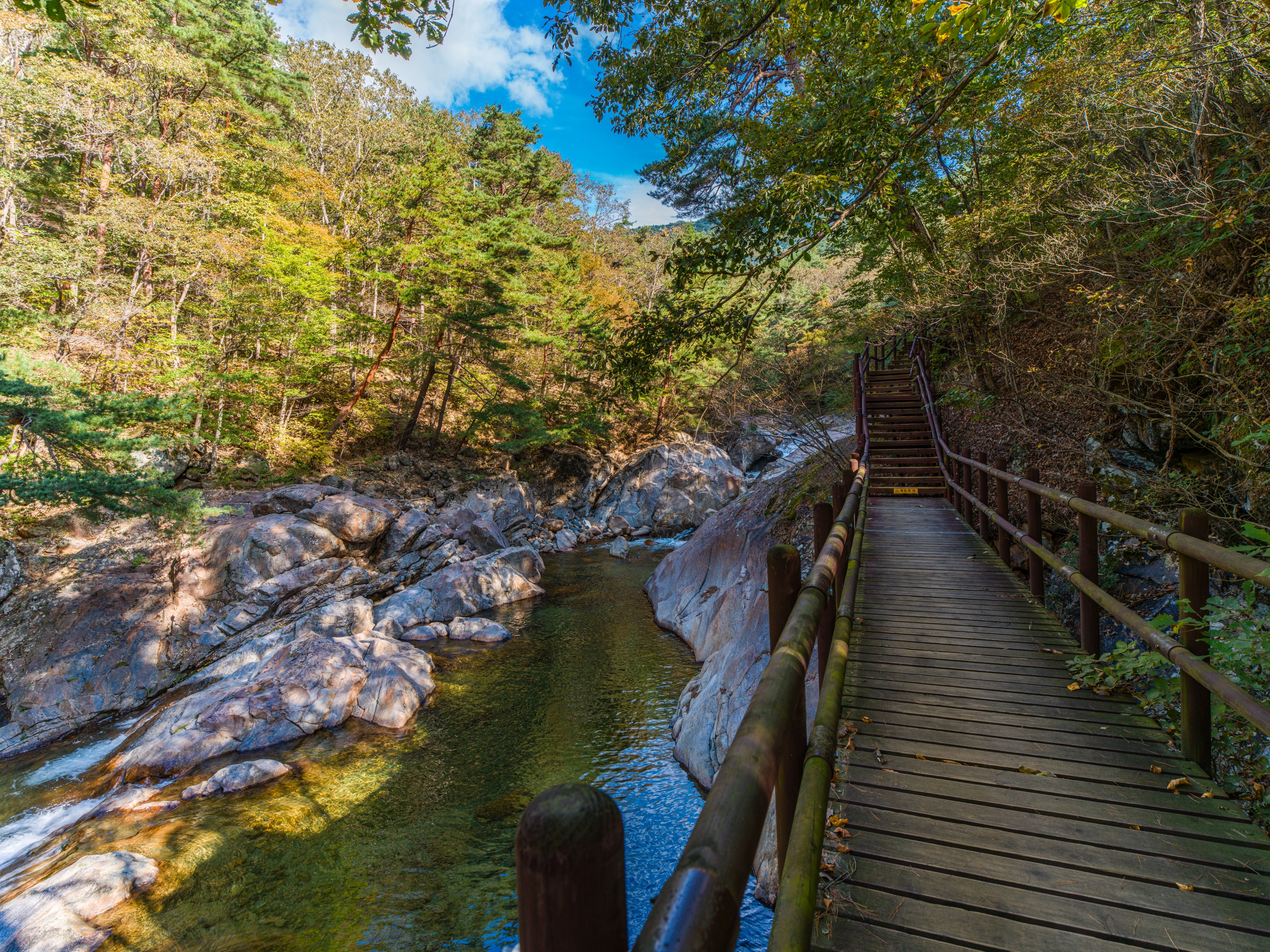 완만하게 정비된 데크길을 따라 걸으면 시리도록 맑은 계곡물, 기암괴석을 감도는 옥류소리, 울창한 금강 소나무의 바람소리, 산새들이 우짖는 대자연의 합창을 사시사철 느낄수 있으며, 가을에는 주위 경치와 어우러진 단풍 또한 빼어난 곳입니다.